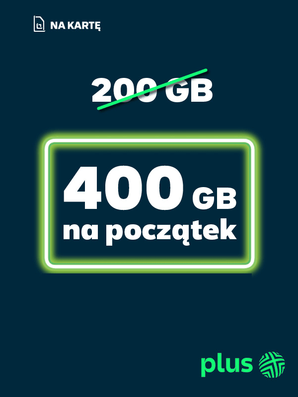 Od 29 czerwca nowi użytkownicy oferty Plus na Kartę dostaną podwojony powitalny pakiet gigabajtów. To idealna oferta na wakacje, bo zamiast 200 GB otrzymujemy na start aż 400! Oferta dotyczy tylko osób, które kupią nowy starter i w ciągu 30 dni od aktywacji: