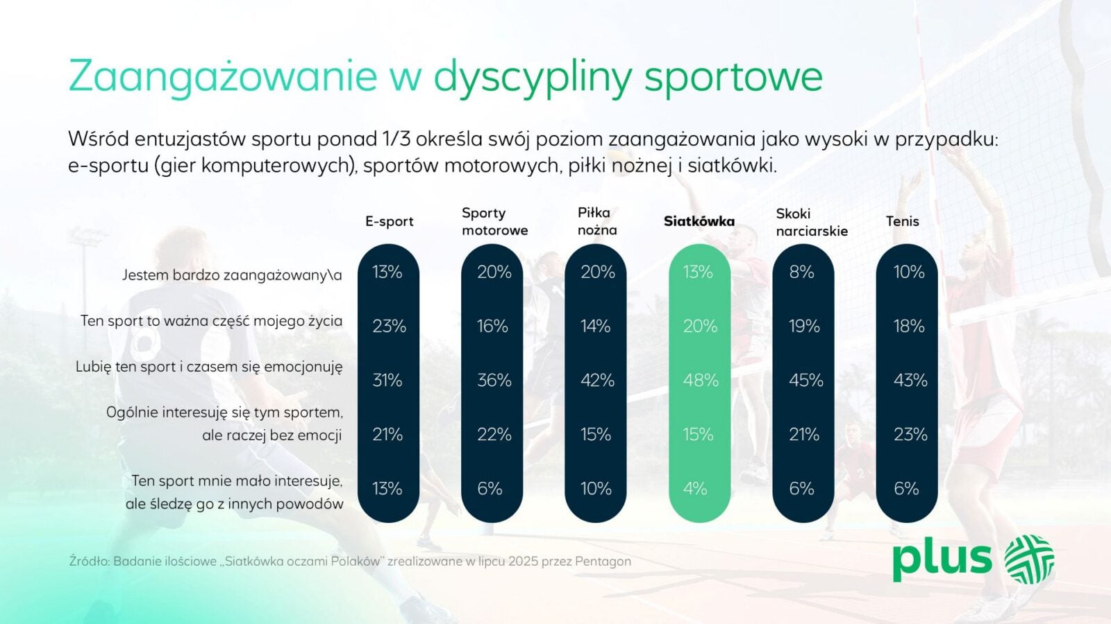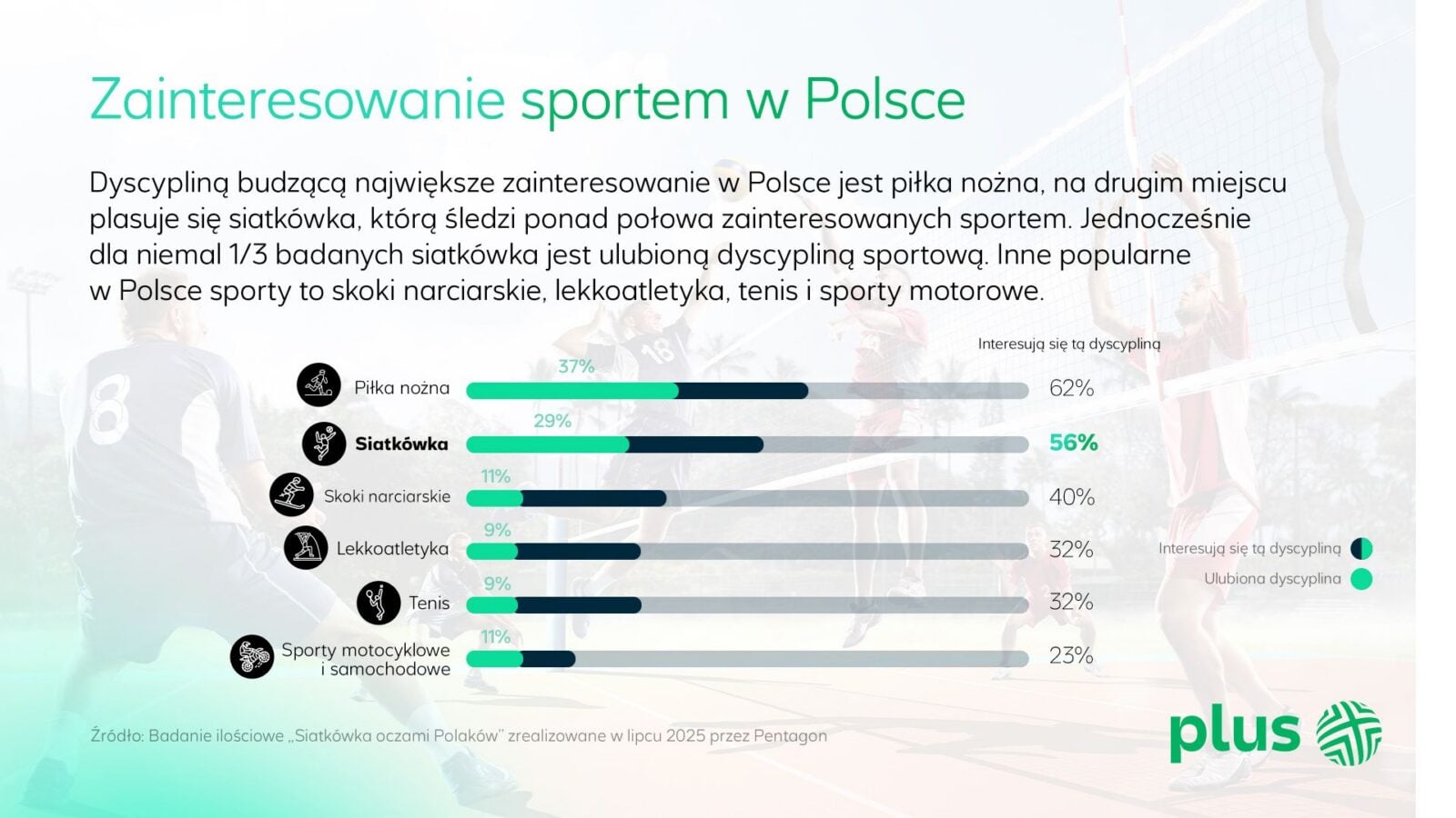 Z badania „Siatkówka oczami Polaków”, przeprowadzonego na reprezentatywnej grupie 1001 osób, wynika, że sportem interesują się aż dwie trzecie ankietowanych, a dla co czwartego z nich jest to prawdziwa pasja. Wśród ulubionych dyscyplin siatkówka zajmuje zaszczytne drugie miejsce, zyskując 56% wskazań i ustępując jedynie piłce nożnej (64%). Za siatkówką plasują się skoki narciarskie, lekkoatletyka, tenis i sporty motorowe. Co ciekawe, na liście najpopularniejszych sportowców, których Polacy śledzą w mediach, zaraz za Robertem Lewandowskim i Igą Świątek znalazł się siatkarz Bartosz Kurek. To potwierdza, jak bardzo popularna jest ta dyscyplina w naszym kraju.
