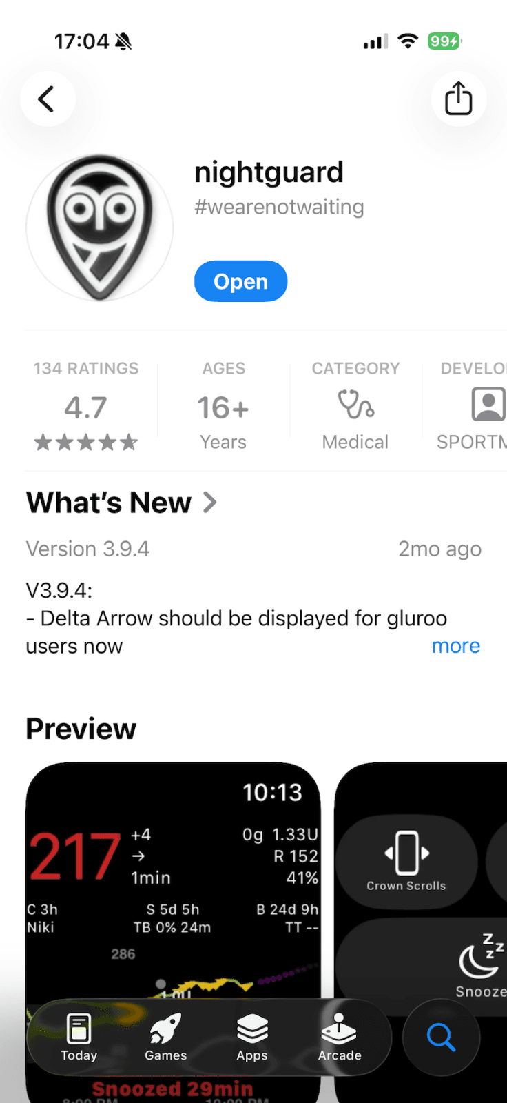 - Nightguard — aplikacja na iOS i watchOS, która wyświetla dane glukozy na Apple Watch. Współpracuje z platformą Nightscout, otwartym projektem do monitorowania poziomu cukru.