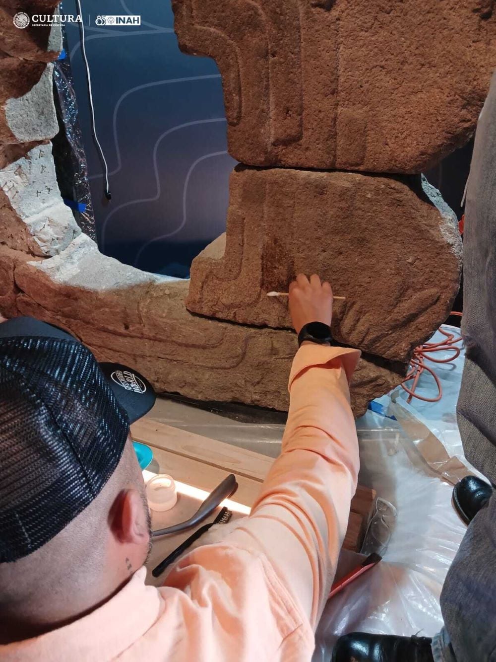 Prace prowadzone w Museo Regional de los Pueblos de Morelos polegały na dokładnym oczyszczaniu, usuwaniu starych klejów i niewłaściwych wypełniaczy. Użyto nawet radiografii, aby zajrzeć w głąb kamienia, choć jego gęsta struktura nie ułatwiała zadania. Zespół pod kierownictwem Juana Manuela Rochy Reyesa podjął strategiczną decyzję o pozostawieniu metalowej konstrukcji z tyłu obiektu, aby uniknąć ryzykownego wiercenia. Skomplikowany proces renowacji zakończył się w ubiegłym roku.