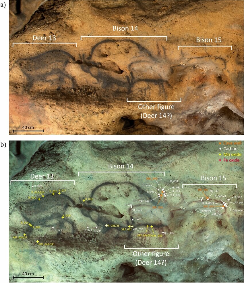 Tak naprawdę był to jednak dopiero wstęp do długiej listy zagadek skrywanych przez położoną w południowo-zachodniej Francji jaskinię. Na przestrzeni lat naukowcy zaczęli wykorzystywać coraz bardziej zaawansowane techniki badawcze. Użyli między innymi fluorescencji rentgenowskiej, spektroskopii oraz fotografii w podczerwieni i świetle widzialnym. W takich okolicznościach wykazali, iż pod obecnie widocznymi rysunkami żubrów znajdowały się inne, ukazujące także konie czy jelenie.