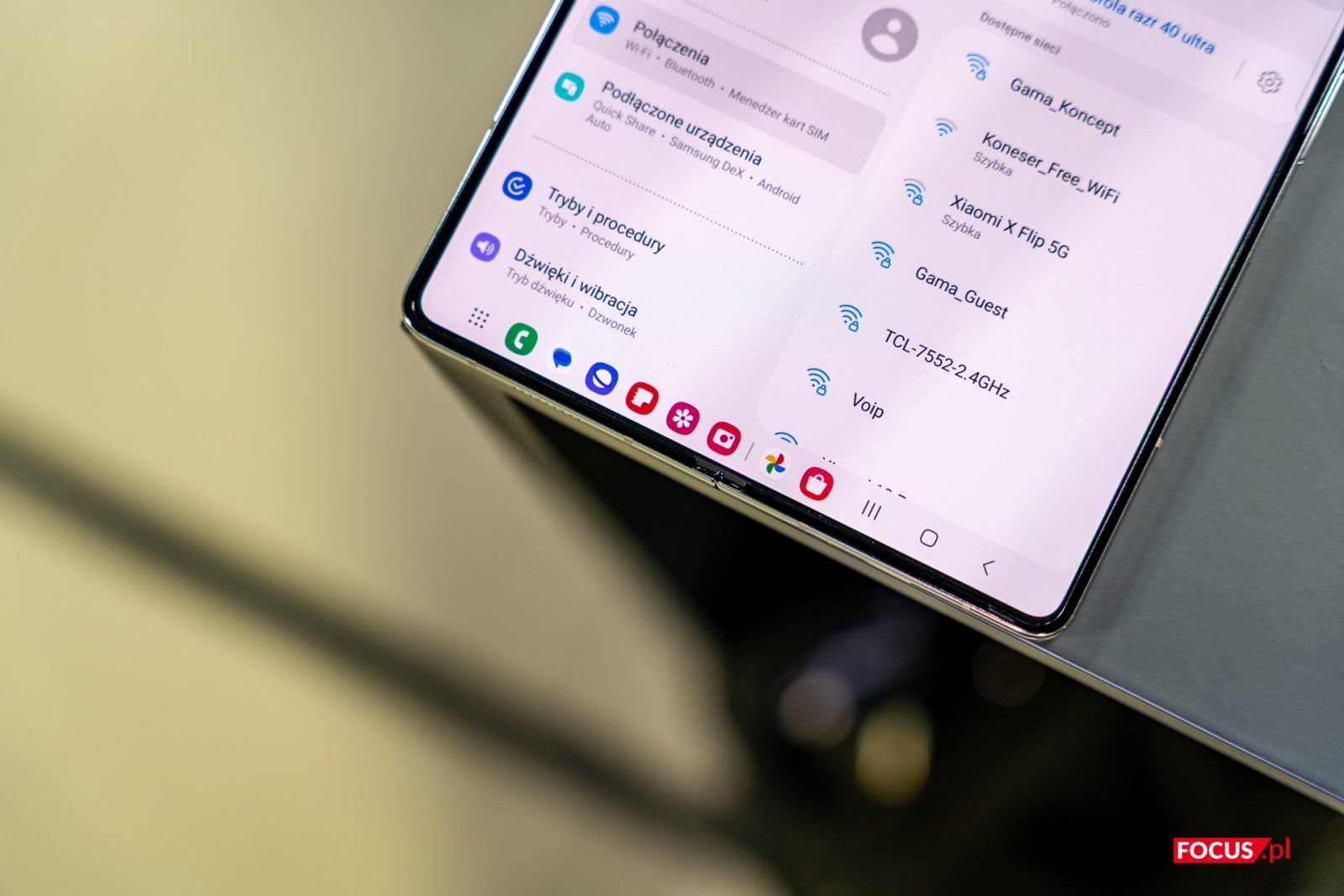 Na zewnątrz znajdziemy wyczekiwany 3,4-calowy ekran dodatkowy, który przyjął kształt folderu. Tak, jak mówiły przecieki, Samsung zoptymalizował pod zewnętrzny panel niektóre aplikacje, takie jak Netflix, YouTube oraz Mapy Google. Mamy więc większą funkcjonalność, ale nadal nie jest to poziom Motoroli Razr 40 Ultra, która daje możliwość korzystania z każdej aplikacji. Spodziewaliśmy się tego, jednak to i tak rozczarowujące. Ekran dodatkowy można wykorzystywać do sprawdzania powiadomień, szybkich odpowiedzi na wiadomości czy korzystania z wyselekcjonowanych widżetów. Z poziomu tego panelu mamy też dostęp do szybkich ustawień, trybów i oczywiście podglądu aparatów. Odblokujemy go przy pomocy twarzy, skanu odcisku palca lub klasycznie – kodem PIN, wzorem lub hasłem. Samsung daje też możliwość personalizowania zewnętrznego ekranu przy użyciu tapet z tarczą zegara lub takich, które samodzielnie dostosujemy do swoich preferencji.