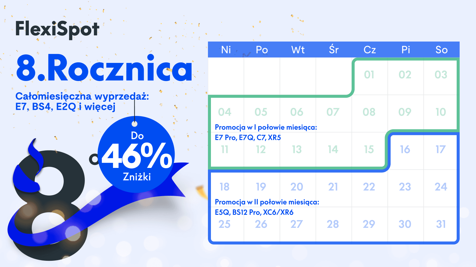 Więcej promocji z okazji 8. urodzin FlexiSpot