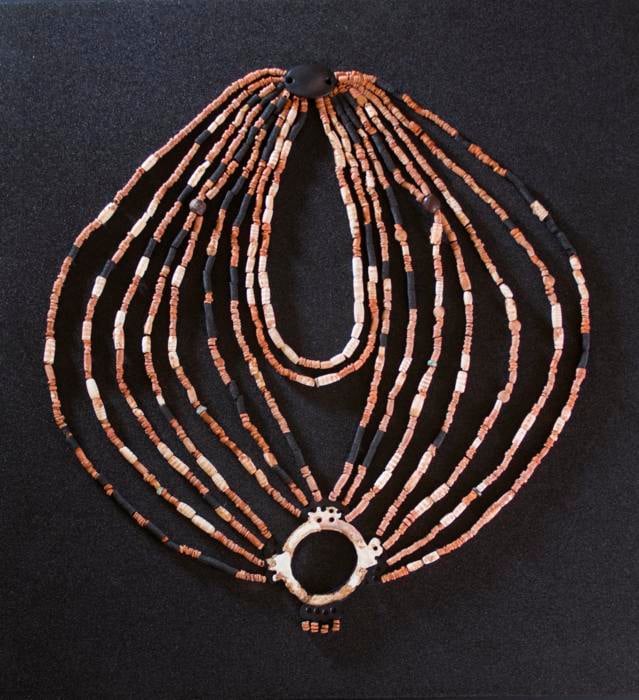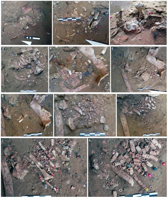 I choć na pierwszy rzut oka mogło się wydawać, że trudno będzie wyciągnąć konkretne wnioski na podstawie obecności tych ozdobnych drobinek, to z czasem badacze zwrócili uwagę na pewne powtarzające się wzory. Na przykład na każde 10 koralików w kształcie krążków przypadały dwa kolejne w kształcie rurek. Dalsze ekspertyzy doprowadziły do identyfikacji pierścionka z masy perłowej i podwójnie perforowanego wisiorka, na który wciąż nawleczone były pojedyncze koraliki.