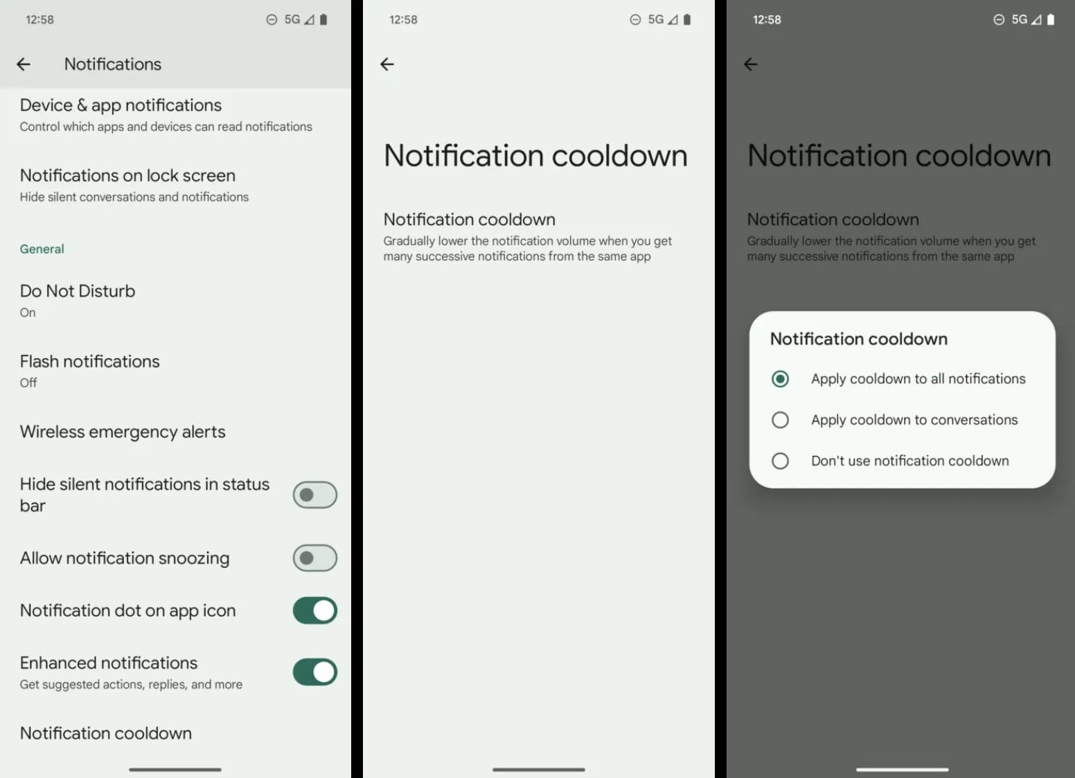 Google postanowił znaleźć sposób na tę niedogodność i w pierwszej deweloperskiej wersji systemu Android 15 odkryto przydatną funkcję o nazwie „Notification cooldown”. Jak możemy przeczytać w opisie, jest to opcja, której zadaniem jest stopniowo zmniejszać głośność kolejnych powiadomień z tej samej aplikacji. Te nadal będą się pojawiać, ale jeśli np. na czacie grupowym uczestnicy napiszą sto wiadomości w krótkim czasie, po pierwszym wyraźnym sygnale, kolejne będą coraz cichsze i cichsze.