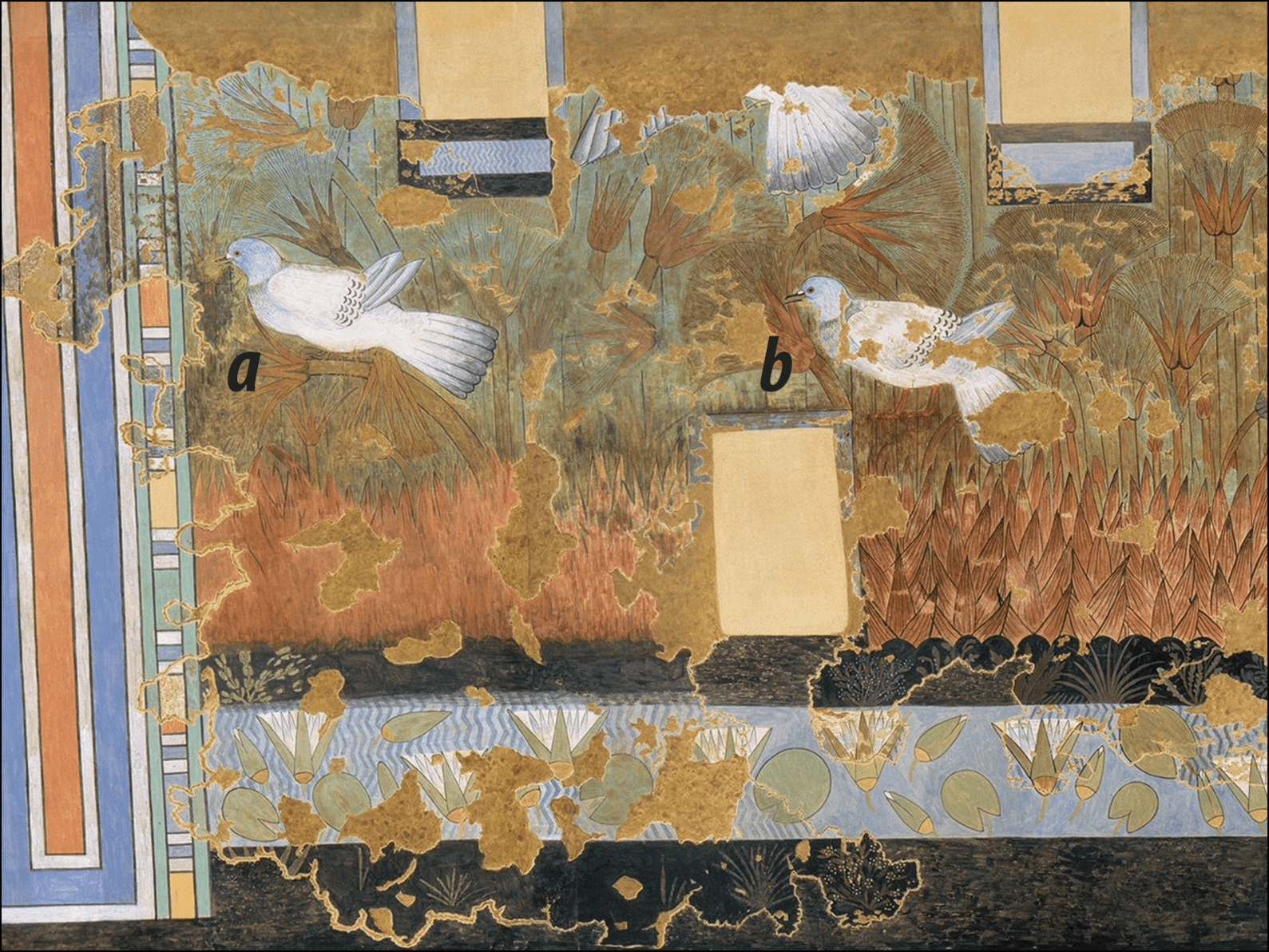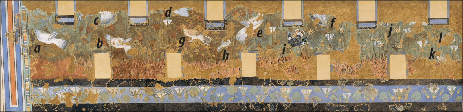Naukowcy przyjrzeli się bacznie rysunkom ptaków i zidentyfikowali kolejne gatunki. Do wcześniej już rozpoznanych zimorodków i gołębi doszły także dzierzby i pliszki. Najbardziej badaczy zastanawiało, dlaczego namalowano gołębie latające nad krajobrazem papirusowych mokradeł, kiedy to nie jest ich naturalne środowisko.