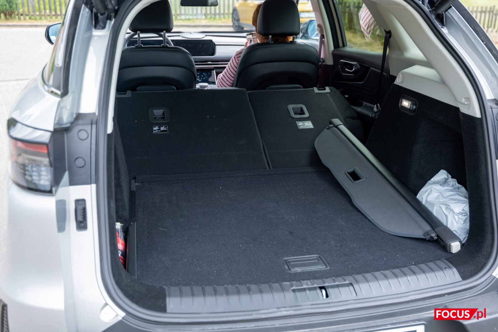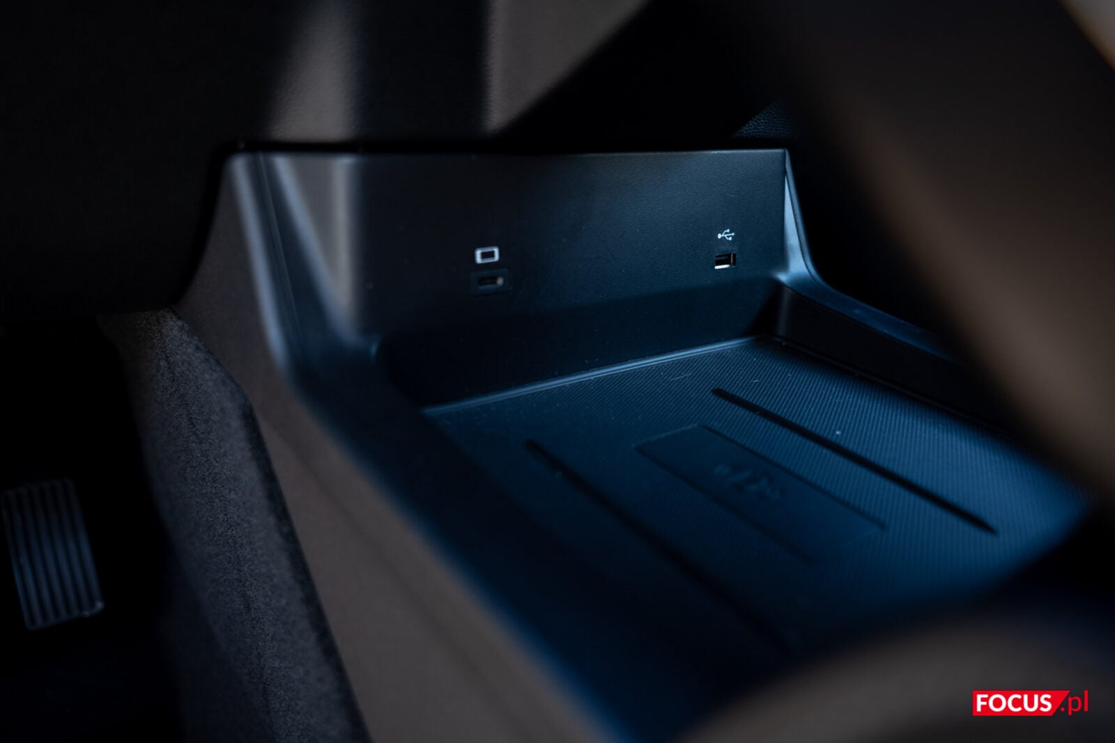 Wracając jeszcze na chwilę do wnętrza, warto powiedzieć o tym, jak bardzo jest ono przestronne i pełne schowków. W podsufitce ukryjemy okulary, pod przesuwanym podłokietnikiem kilka butelek napojów i mnóstwo kabli, a w drzwiach jest miejsce na parasol. Schowek w centralnej części kokpitu wykorzystuje przesuwne elementy tak, by dopasować jego zastosowanie do przedmiotów, jakie chcemy w nim umieścić. Do tego nie zapomniano o ładowarce indukcyjnej, która znajduje się pod ekranem ustawień fotela. Tam też znajdziemy porty USB-A i USB-C. Z tyłu umieszczono tylko jeden port USB-C i gniazdo samochodowe.