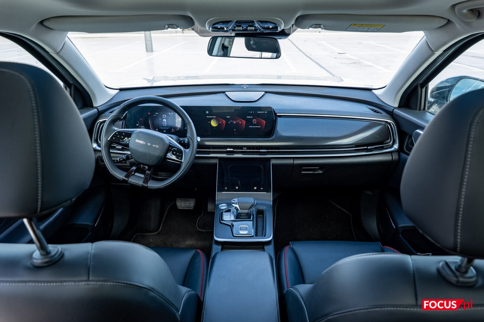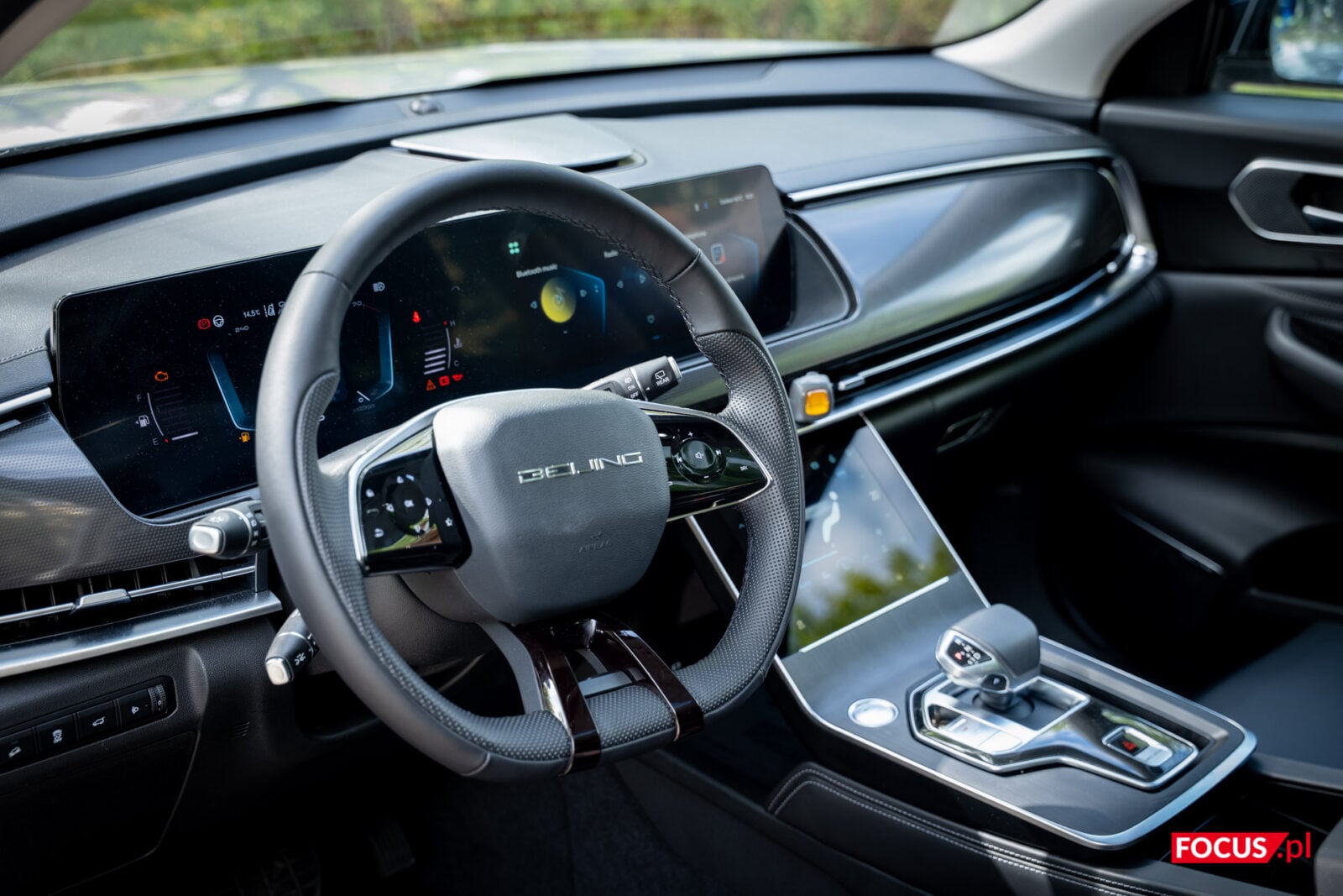 Wrażenie futurystyczności budują tu oczywiście ekrany – w przypadku BAIC Beijing 7 są to trzy panele. Pierwszy, 7-calowy, znajduje się przy kokpicie kierowcy i towarzyszą mu ikony oraz wskaźnik poziomu paliwa i temperatury płynu chłodzącego. Drugi i największy ekran to 12,3-calowy ekran dotykowy będący konsolą centralną. Trzeci znajdziemy niżej – to panel do obsługi klimatyzacji i foteli oraz miejsce na kilka skrótów zupełnie niezgadzających się z tą koncepcją, jak włącznik podglądu z kamer 360 stopni.