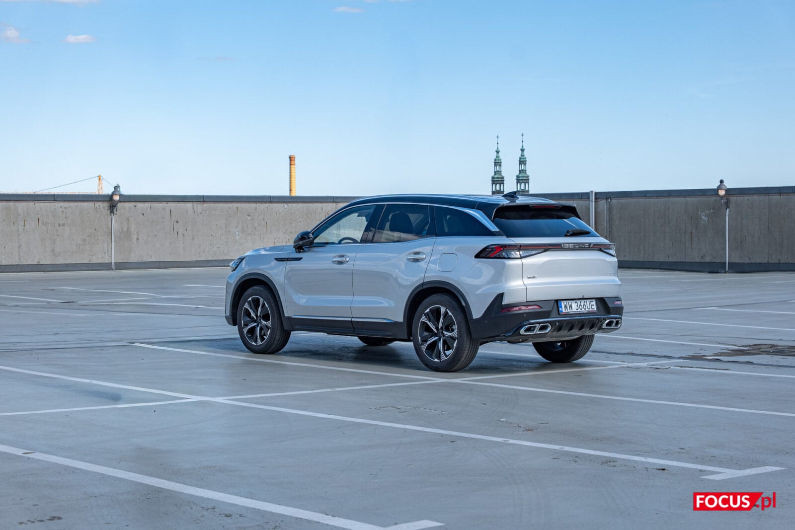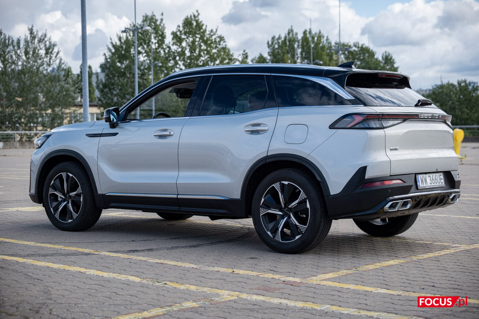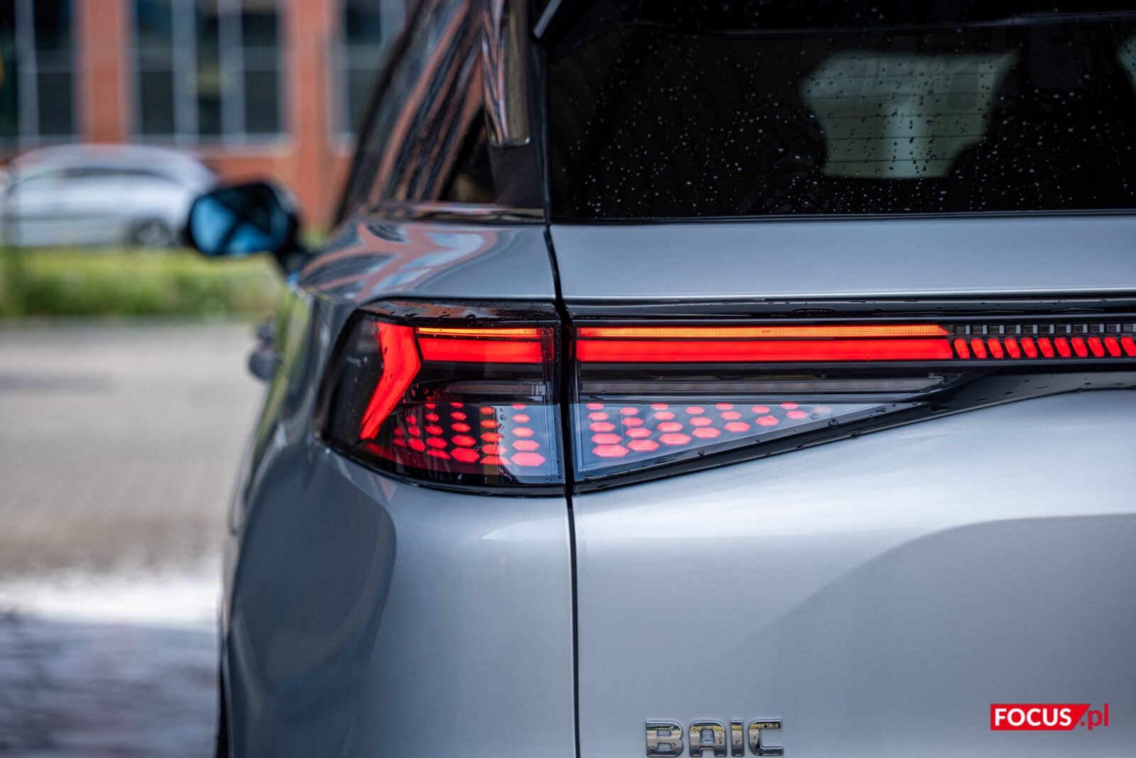 Jednocześnie, jako że mamy do czynienia z chińskim samochodem, to BAIC Beijing 7 ma w sobie trochę chińskiego bajeranctwa. Cztery wydechy to przerost formy nad treścią, podobnie jak podświetlany napis “Beijing” w tylnej części (choć wiem, że podobnie podświetla się logo Cupry, to w dalszym ciągu pomysł na granicy kiczu). W srebrnym, testowanym wariancie z czarnym dachem nieco umyka też masywność lusterek, a sami najpewniej nie zobaczycie także, że dzienne światła w kształcie liter “L” stały się niemal integralną częścią grilla. Muszę przyznać, że mnie te zabiegi stylistyczne ujęły, natomiast są one niecodzienne. Dlatego też popatrzcie i sami oceńcie.