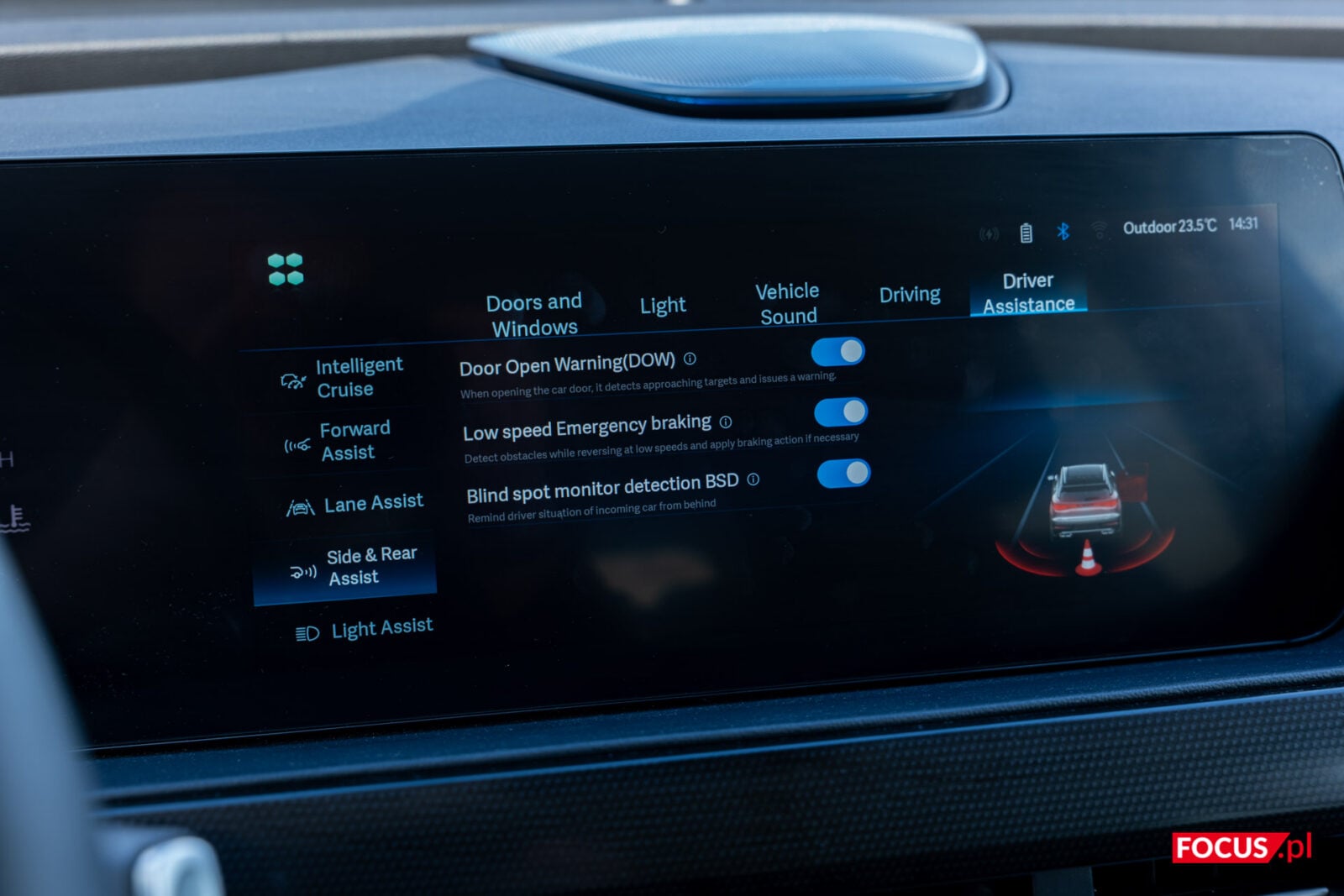 Samochód dba o nasze bezpieczeństwo wieloma systemami. Adaptacyjny tempomat (IACC) pozwalał mi jeździć po autostradzie nie tylko bez potrzeby naciskania gazu, ale i hamulca. Nie zapomnijcie włączyć go w ustawieniach. System ostrzegania przed kolizją (FCW) dobrze łączy się z automatycznym hamowaniem awaryjnym (AEB) i w jednym momencie poczułem, jak dobrze potrafi zareagować samochód. Asystenci utrzymania pasa ruchu (ELKA) oraz asystent jazdy w korku (TJA) nie zbiorą ode mnie wybitnych ocen, bo samochód ma dość swobodną interpretację pasa ruchu, a przy jeździe w korkach rozpędza się w sposób szarpany. Dobrze spisały się za to czujniki martwego pola i system wykrywania poruszających się obiektów – dzięki nim ustrzegłem się kilku problematycznych chwil.
