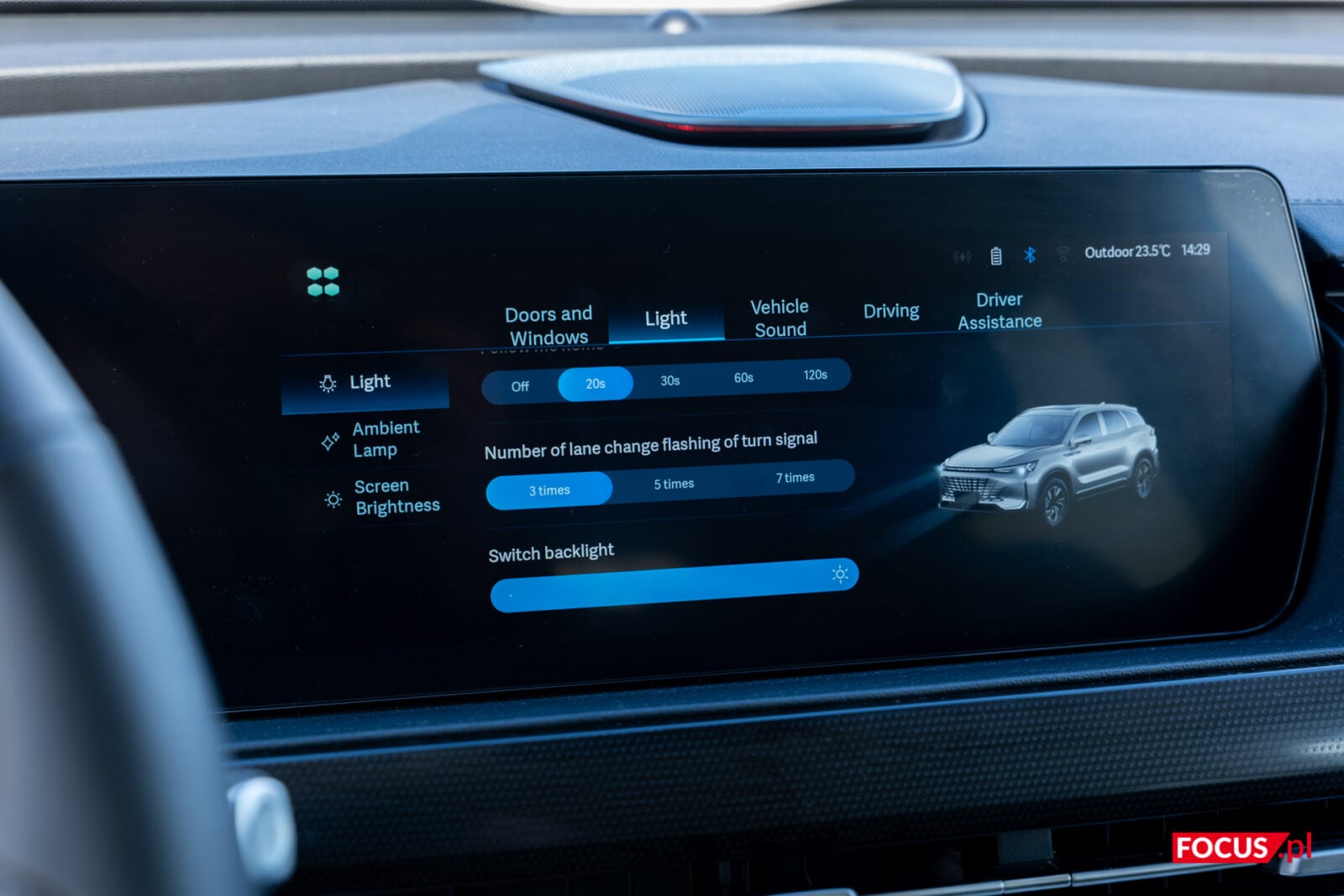 Z drobiazgów, którymi zrobicie dobre wrażenie – warto wspomnieć o systemie podświetlenia, które może mieć różne kolory. Oprócz tego w opcjach smart włączymy jego reakcję na prędkość czy muzykę i te tryby zupełnie do mnie nie przemawiają. Tak czy inaczej, tym BAIC Beijing 7 nie uratuje swoich multimediów. System jest do wymiany i do lokalizacji na język polski.