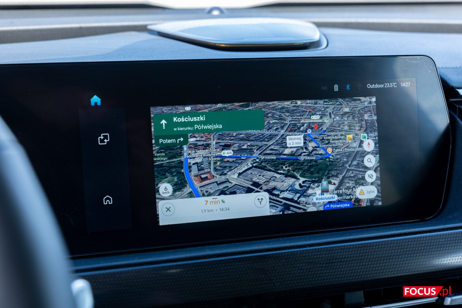 Kiedy weźmiemy się za jazdę, dostrzeżemy kilka spraw. Szybko w oczy rzuci nam się to, że czytelność ekranu co do zasady jest dobra, ale szyberdach ze słońcem świecącym wprost na panel znacznie przeszkadza w odbiorze. Przy większych prędkościach odczujemy za to bardzo dobre wygłuszenie – porównywalne do tego, co czułem w Nissanie Ariya, który przecież jest sporo droższy.