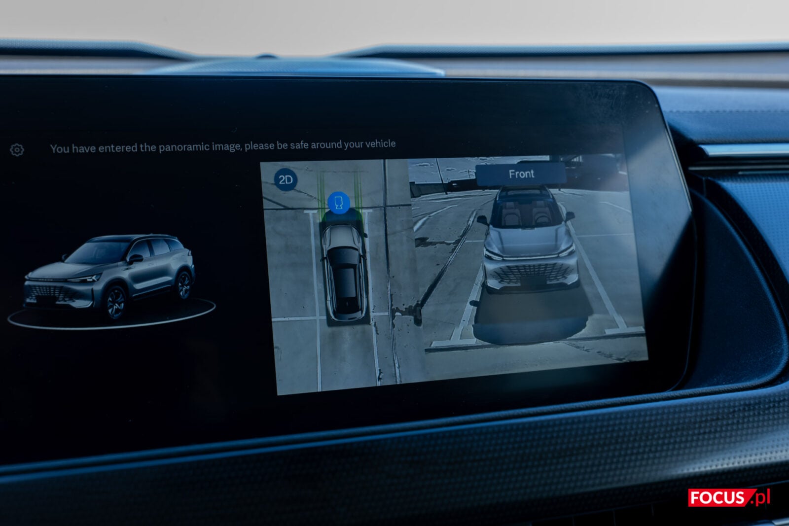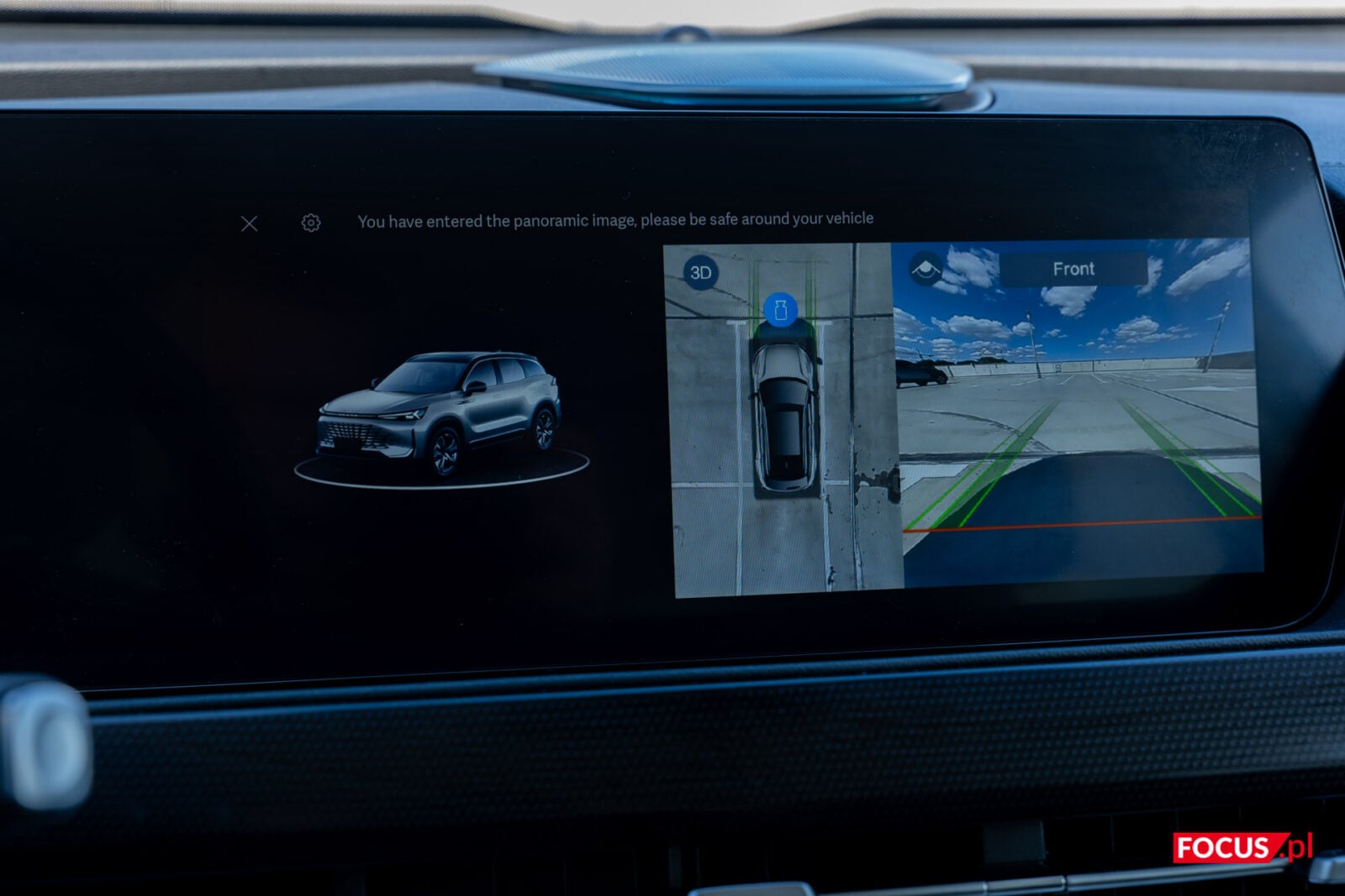 BAIC Beijing 7 oferuje system kamer 360 stopni i ten się przydaje, bo niezależnie od ustawienia szanse na zobaczenie całej maski są niewielkie. System zaimplementowany w pojeździe możemy wywołać przyciskiem na ekranie dolnym lub w trakcie cofania i zostaje z nami do rozpędzenia się do pewnej prędkości. Wizualizacja pozwala nawet zobaczyć auto z każdej strony, jeśli rzut z góry nie daje nam pewności, czy zaparkowaliśmy prawidłowo. Jakość materiału oceniłbym dobrze, choć raczej bliżej środka stawki. Zwłaszcza nocą nie ma co liczyć na wybitną szczegółowość, ale w ciągu dnia jest tu odpowiednio sporo detali i mało dystorsji.