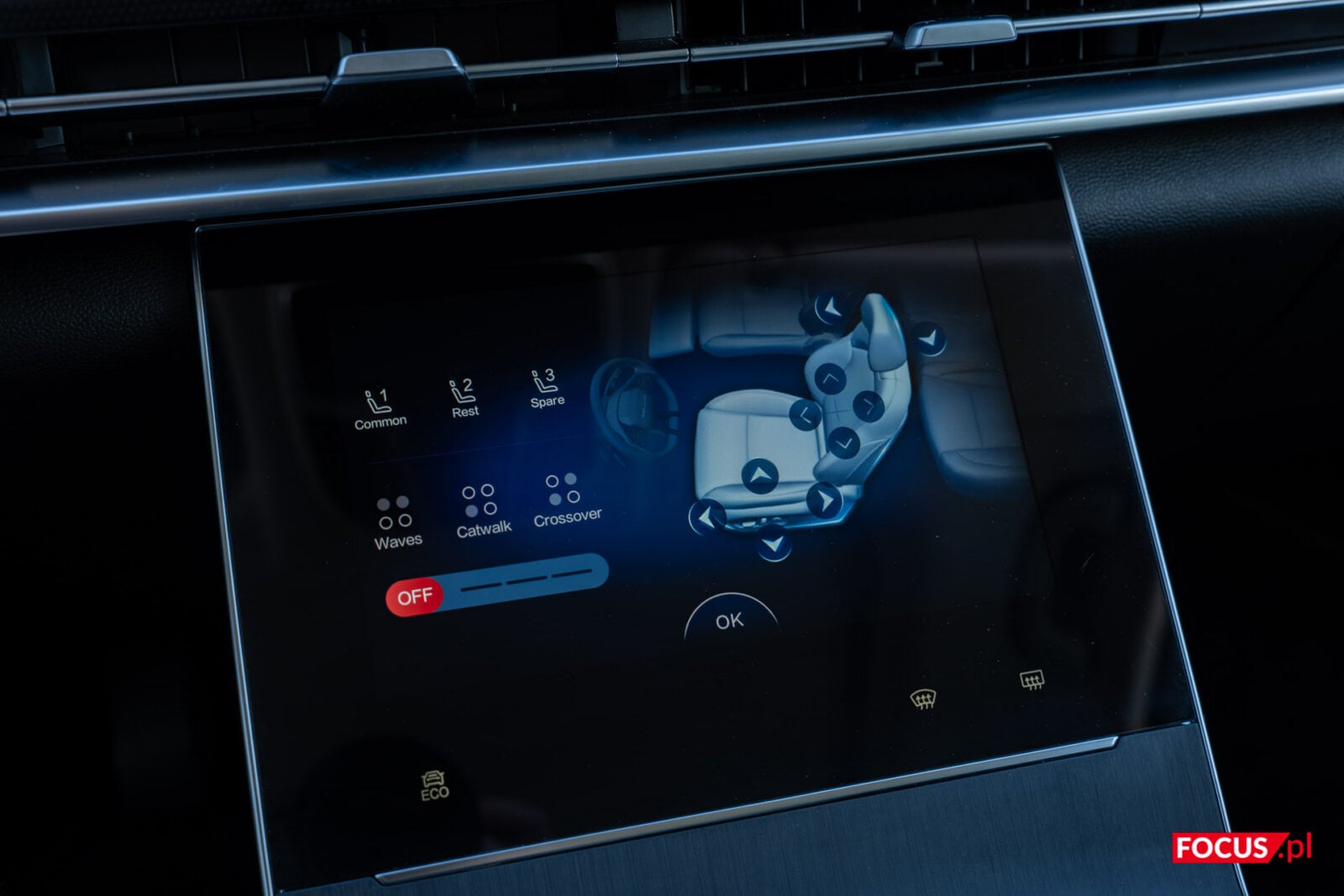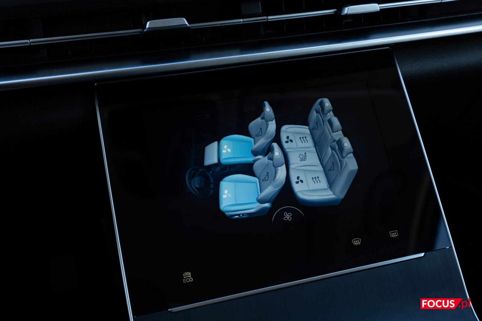 Wrażenia z jazdy osłodzi wam system klimatyzacji oraz masażu. W przypadku fotela kierowcy i pasażera masaż nie wydaje się jakoś szczególnie dotykać pleców. Ot, poduszki, które pojawiają się na kilku odcinkach i niekoniecznie sięgają lędźwi. Znacznie lepiej oceniam klimatyzację, która szybko adaptuje się do warunków i potrafi nieźle wychłodzić lub zagrzać samochód. Do tego plusem jest generator jonów ujemnych. Możecie znać to rozwiązanie z niektórych oczyszczaczy powietrza, bo dzięki niemu te efektywniej eliminują alergeny, bakterie i roztocza. Z mojego doświadczenia faktycznie lepiej oddychało się w takim samochodzie.