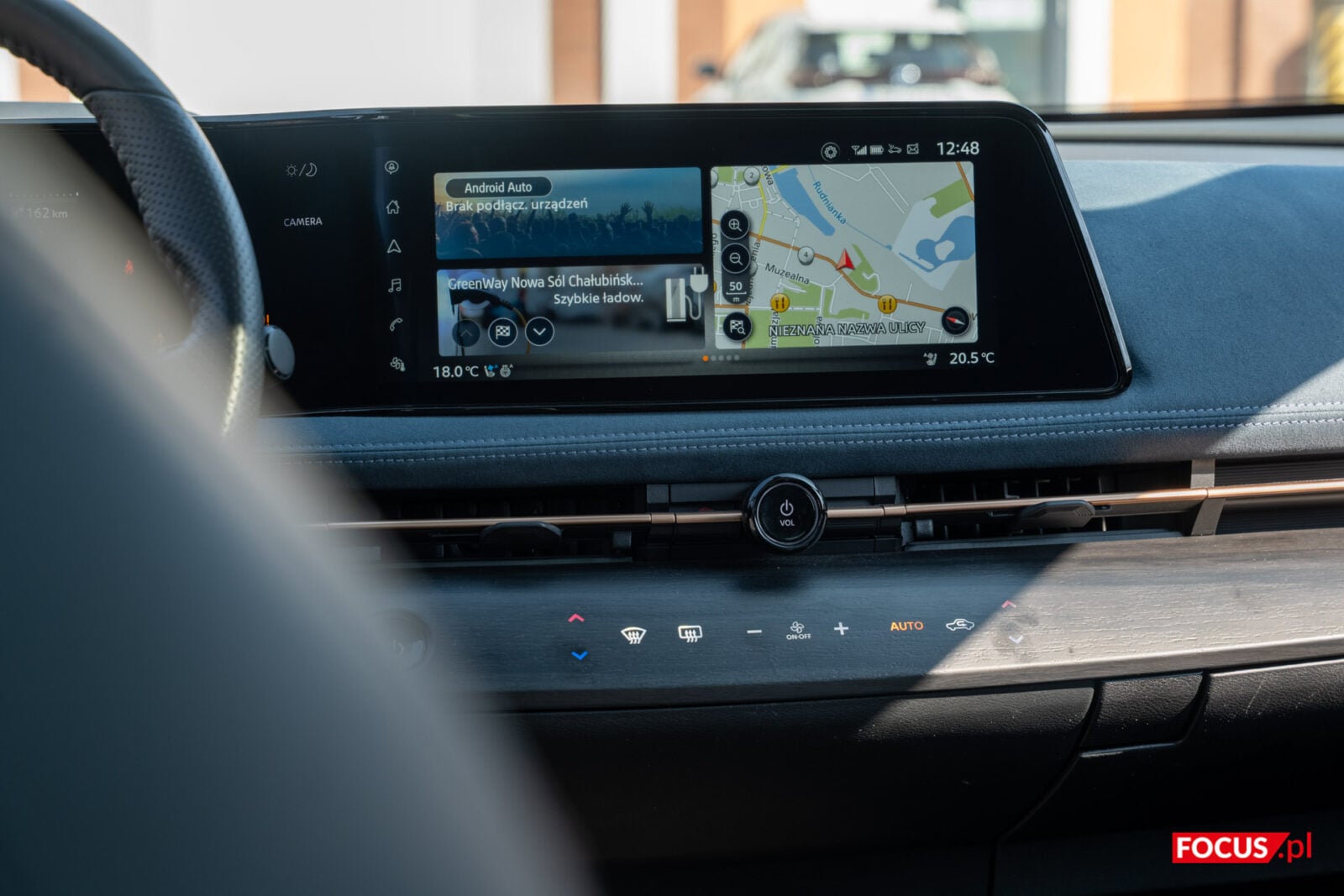 Ustawień zresztą nie brakuje, bo Nissan Connect pozwala personalizować nie tylko wygląd zegarów, ale i to, które opcje mają być dostępne pod ręką. Interfejs Nissana jest raczej dość łatwy do opanowania, choć wizualnie nie jest to moim zdaniem rozwiązanie, które wygląda nowocześnie. Do tego połączenie z Android Auto odbywało się wyłącznie po kablu. Późniejsze łączenie tego samego smartfonu musiało odbywać się po kablu. To jednak małe problemy, a doświadczenie jest skupione na tych rozwiązaniach, które poprawiają jakość poruszania się na trasie, jak i ułatwiają jej zakończenie.