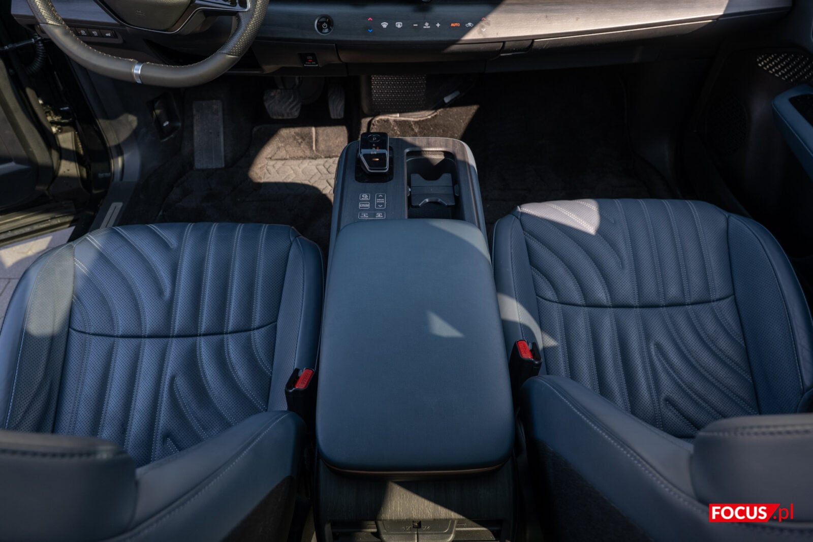 Wróćmy jednak do przodu, w którym przestronność nabiera nowego znaczenia. Na fotelu możemy rozsiąść się wygodnie i zaufać elektronicznej kontroli wysokości, przesunięcia względem kierownicy oraz wychylenia oparcia pleców. Do przesunięcia fotela dopasujemy elektronicznie wysokość kierownicy, kąt padania wyświetlacza HUD na szybie oraz… konsolę centralną. Tak, jej położenie także reguluje mechanizm, co ma sens, w końcu znajduje się na niej “dźwignia” zmiany biegów.