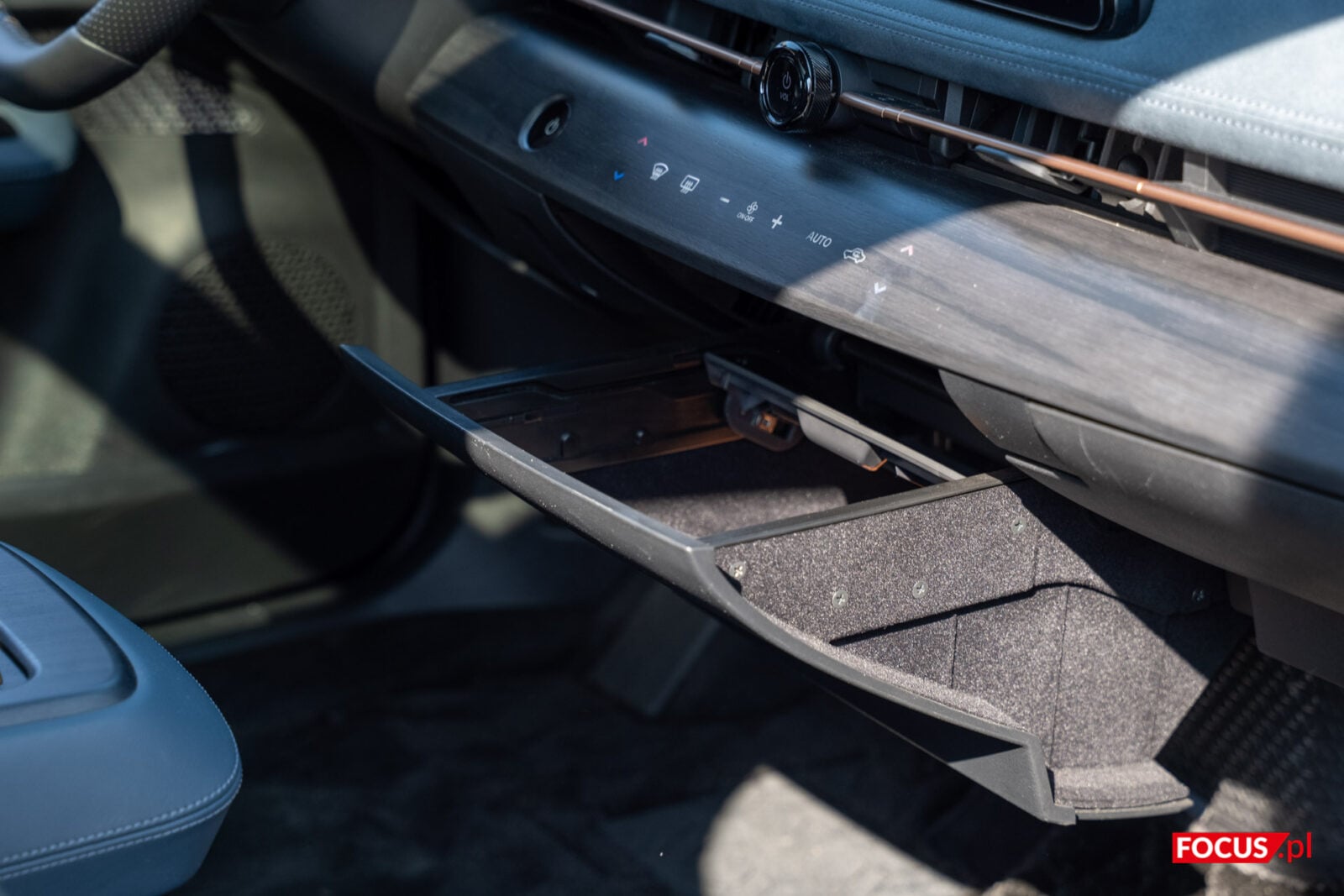 Pod tym rozwiązaniem coś dla równowagi – elektronicznie wysuwany schowek. Wszystko byłoby z nim dobrze, gdyby jego wysunięcie było kwestią naciśnięcia przycisku. Zamiast tego przycisk trzeba przytrzymać tak długo, jak nie uznamy półki za odpowiednio wysuniętą. Proces to żmudny i zajmuje kilka sekund oraz kolejne kilka sekund na zamknięcie drugim przyciskiem.