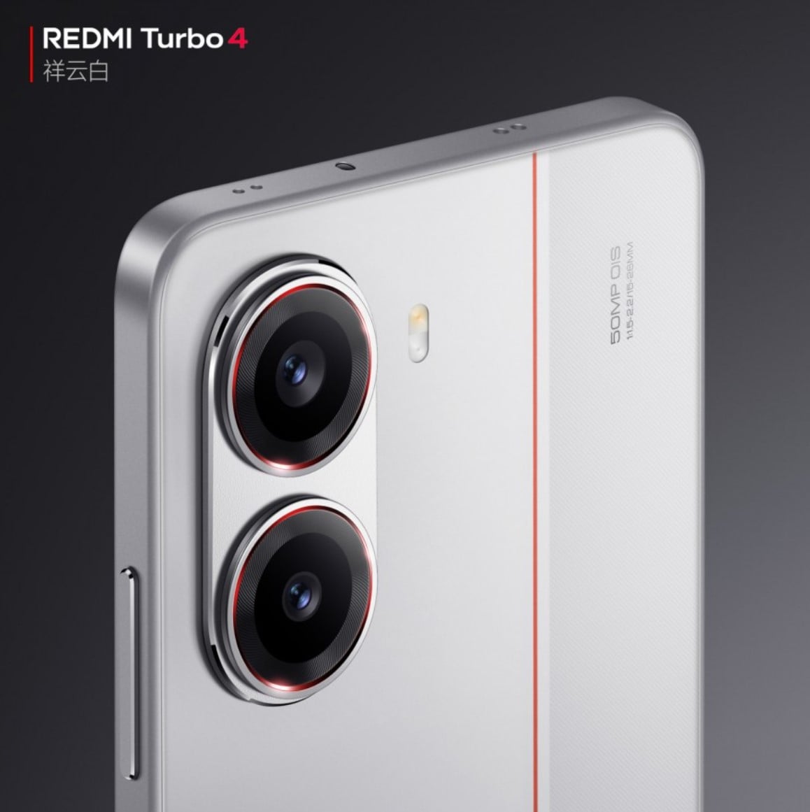 Dzięki grafikom wiemy, że Redmi Turbo 4 będzie cechował się minimalistycznym designem z płaskimi ramkami z subtelnym zakrzywieniem i wyspą aparatu w kształcie pigułki, na której zostaną umieszczone dwa sensory. Najbardziej rzucającym się w oczy elementem projektu ma być cienka czerwona linia biegnąca pionowo przez tylną obudowę. Tylna konfiguracja obejmie aparat główny 50 Mpix i aparat 8 Mpix z obiektywem ultraszerokokątnym. Cała konstrukcja będzie odporna zgodnie z normami IP68 i iP69.