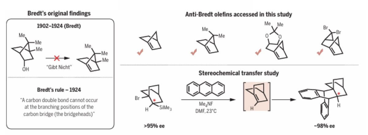 Teraz zespół z UCLA pod kierunkiem prof. Neila Garga zaprzeczył temu założeniu, demonstrując, że tzw. olfeiny anty-Bredt (ABO) mogą być nie tylko syntetyzowane, ale także stabilizowane, co otwiera nowe możliwości w badaniach chemicznych. Kulisy odkrycia opisano w czasopiśmie Science.