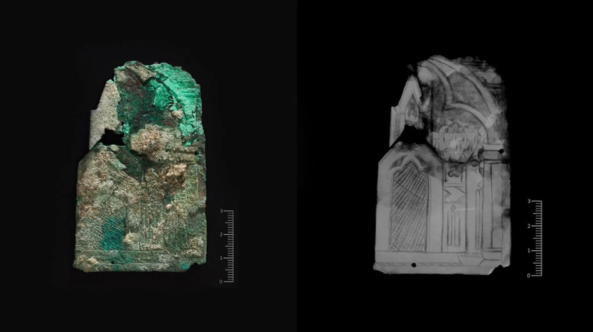 W takich właśnie okolicznościach udało im się zlokalizować pozłacaną miedzianą płytkę o wymiarach wynoszących 5 na 10 centymetrów. Poza tym wydobyli złocony srebrny medalion z motywem zwierzęcym i kilka ozdobnych szklanych klejnotów. Wspomniana płytka została poddana analizom rentgenowskim, za sprawą których badacze dostrzegli budynek kościoła z wieżą i dachem, kolumnami i oknami. Według archeologów artefakt ten stanowi fragment dawnego relikwiarza św. Swituna. Widzimy więc, jak współczesne technologie – w tym przypadku obrazowanie rentgenowskie – pozwalają dostrzec to, co trudno byłoby zobaczyć gołym okiem.