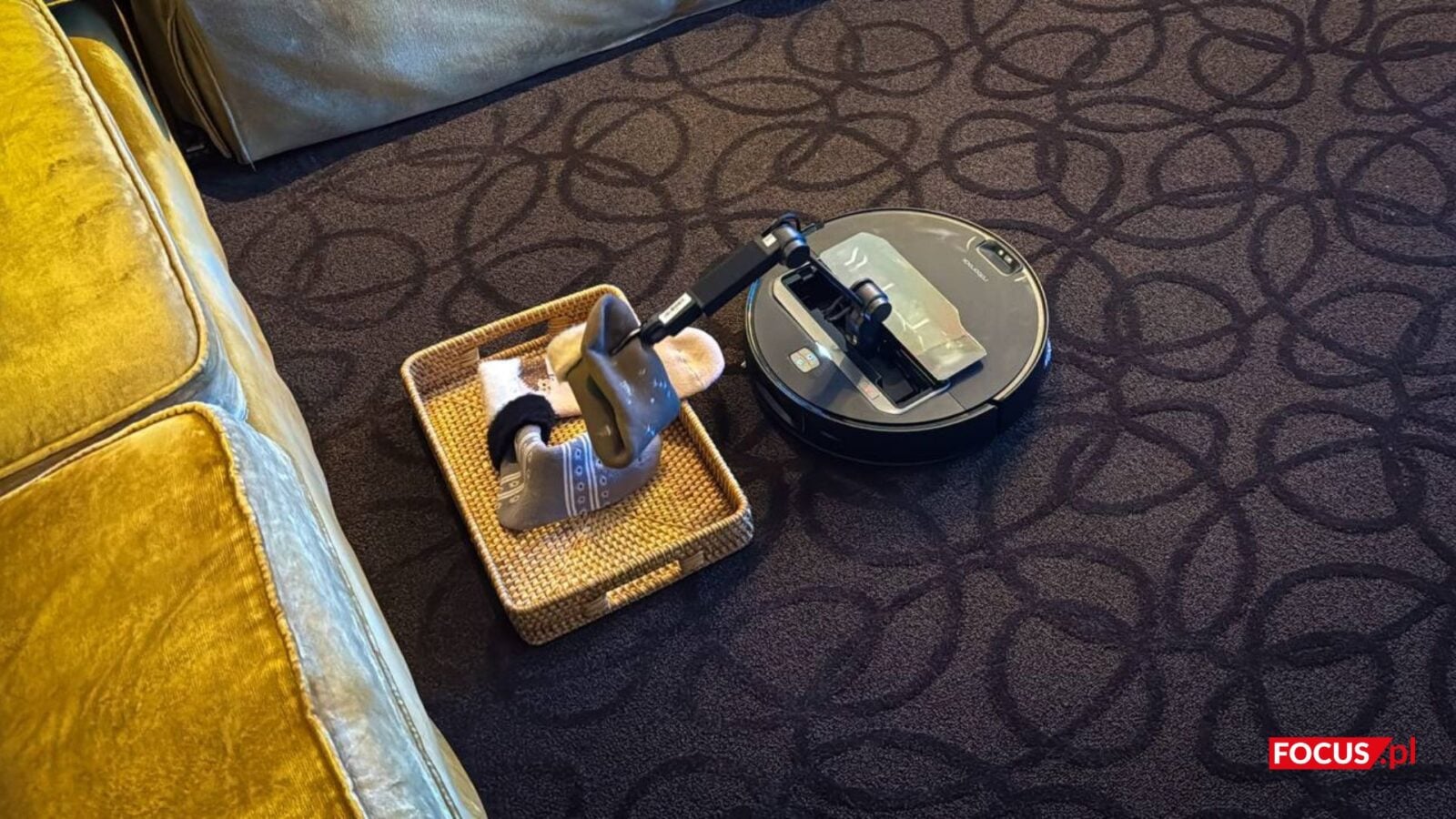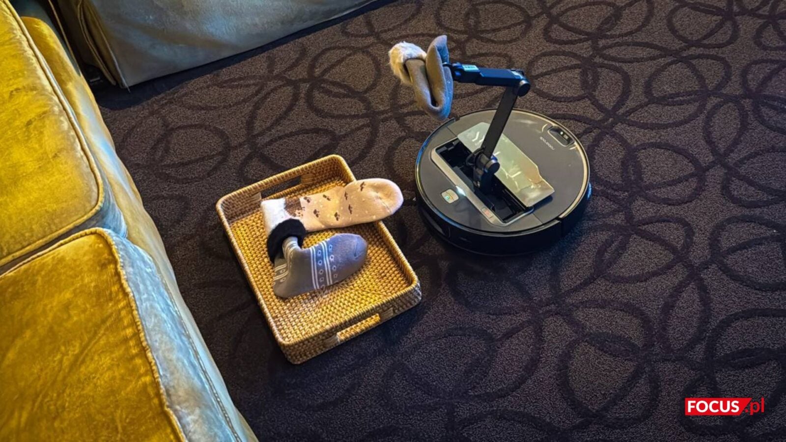 Nie ma wątpliwości, że najważniejszą i jednocześnie najciekawszą nowością jest Roborock Saros Z70 — więc właśnie od tego zaczniemy. To pierwszy na świecie masowo produkowany robot odkurzający wyposażony w mechaniczne, pięcioosiowe ramię OmniGrip. To nie tylko atrakcyjnie brzmiący i ładnie wyglądający gadżet, ale przede wszystkim praktycznie rozwiązanie. Na przykład, jeśli robot znajdzie skarpetkę czy sandały podczas sprzątania, nie omija ich, jak większość urządzeń, tylko podnosi je i odkłada tam, gdzie ich miejsce — a to definiujemy i ustawiamy sami w aplikacji. Dla przykładu, robot znalezione buty może odwieźć na wycieraczkę przy wejściu do domu, chusteczki wyrzuci do śmieci, a skarpety odstawi do pojemnika przy łóżku.