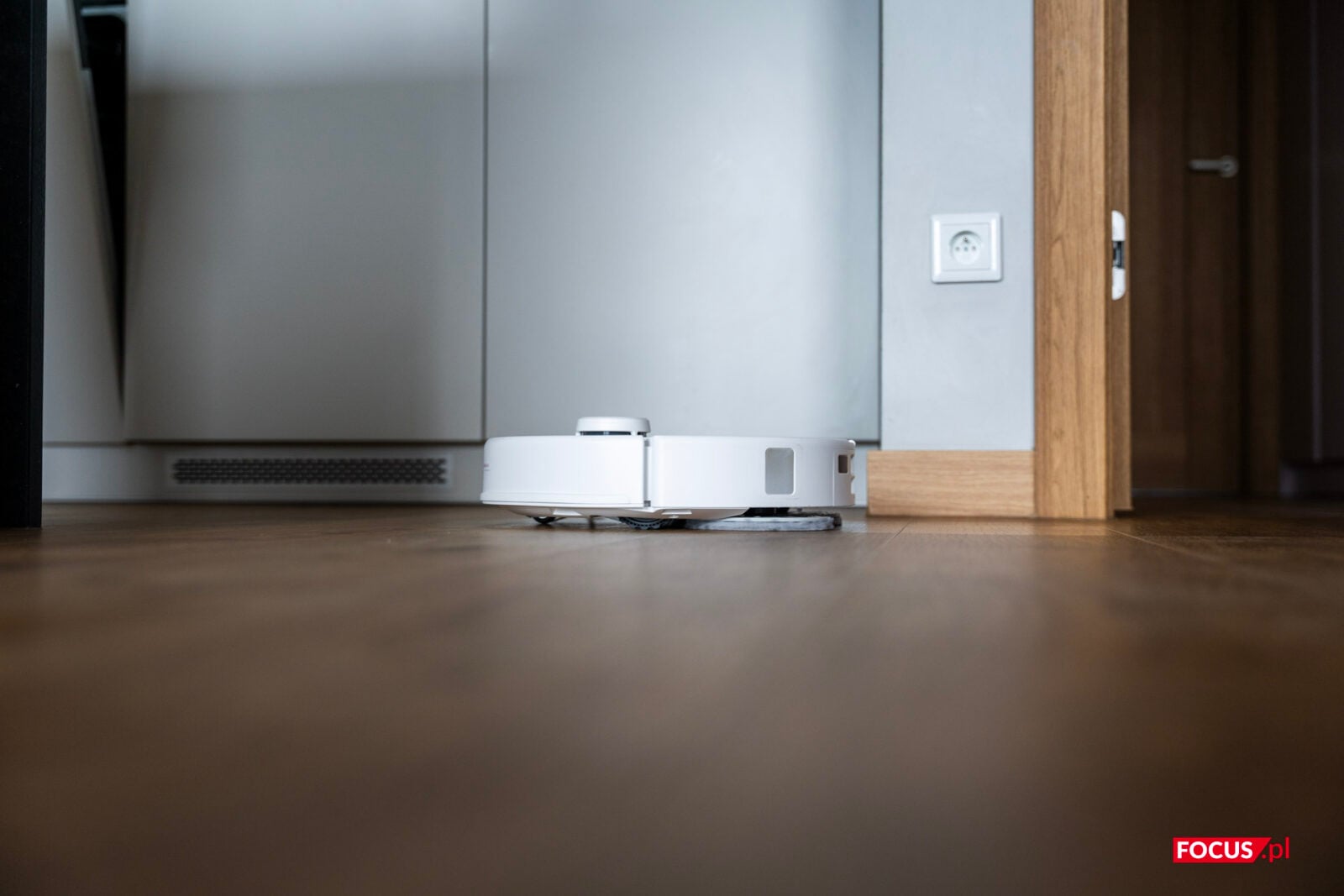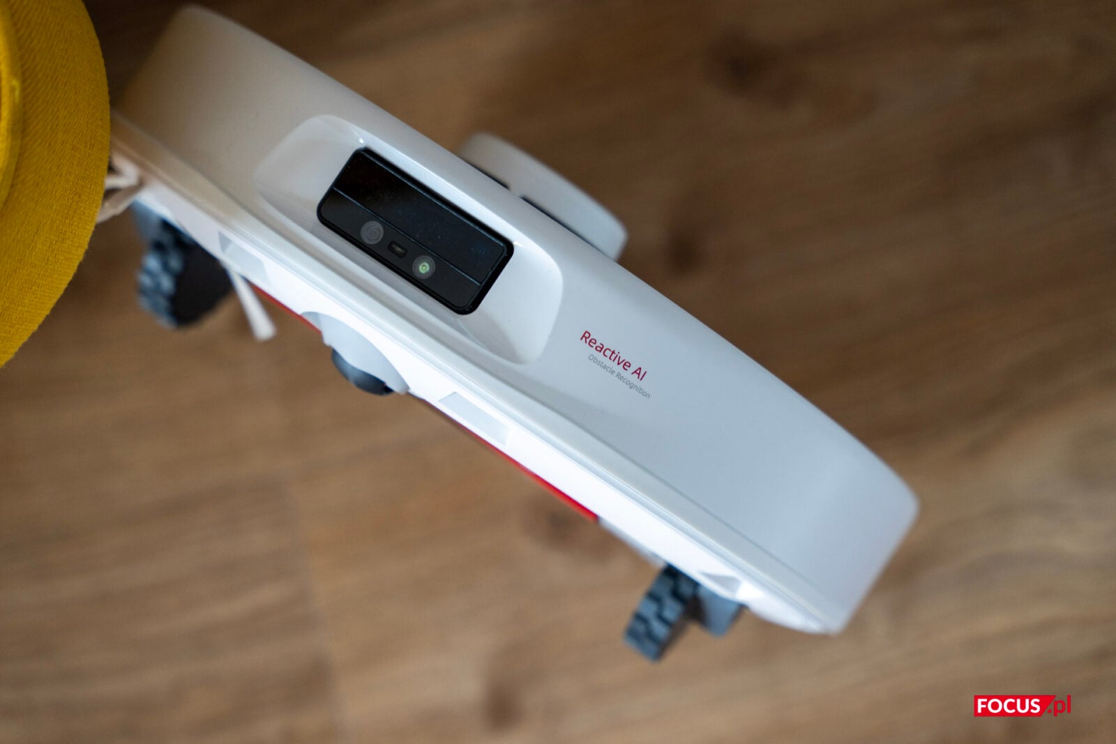 Robot bardzo dobrze radzi sobie z rozpoznawaniem otoczenia. W Aplikacji mozemy włączyć funkcję fotografowania przeszkód, wtedy w trakcie sprzątania urządzenie nanosi na mapę zdjęcia. Działa to bardzo dobrze i dla przykładu, kiedy w trakcie odkurzania krążyłem wokół robota z kamerą, na mapie pojawiło się w sumie kilkanaście zdjęć moich butów. Za każdym razem, kiedy tylko wpadły w pole widzenia kamery. Roborock Qrevo MaxV bardzo sprawnie omija też kable, czy inne przeszkody. Używałem go w naszym biurze, gdzie zawsze rozstawione są m.in. statywy i robot lawirował między nimi z dużą gracją. A to nie jedyna rzecz, którą potrafi zgrabnie wykonywać.