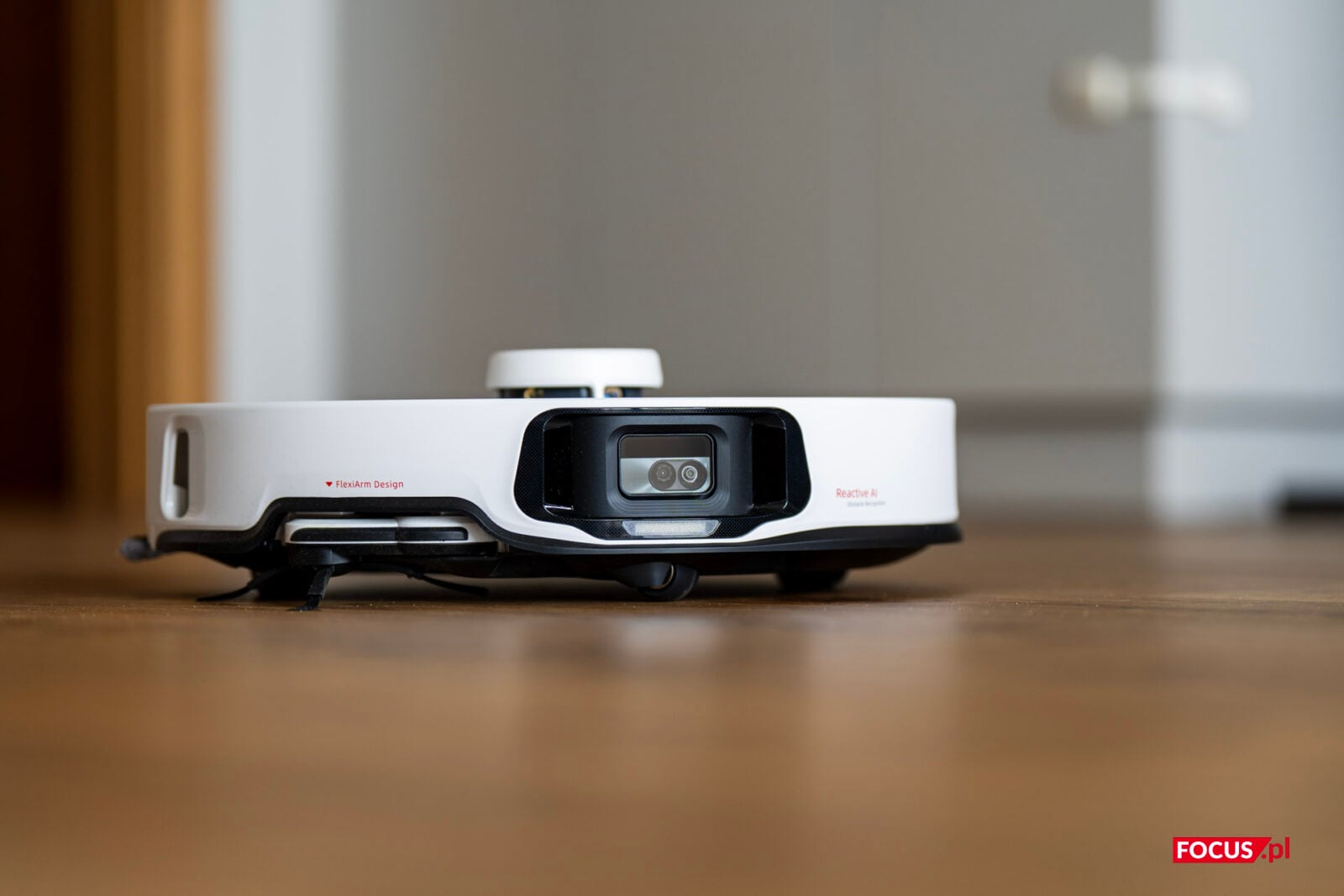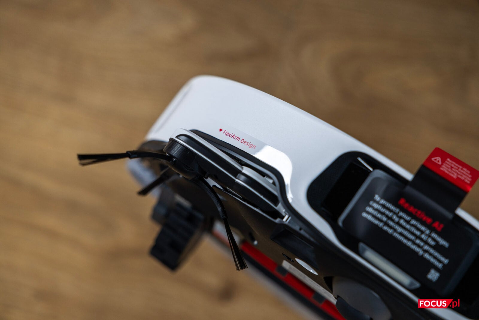 Spokojnie, to tak ma być i jest to coś, co pierwszy raz widzę w robocie sprzątającym. Szczotki boczne od lat są standardem. To takie okrągłe szczotki z wystającym włosiem poza obrys obudowy, które służą do wymiatania kurzu z kątów i sprzątania wzdłuż ścian. Czy można to zrobić lepiej? Można i nazywa się FlexiArm. Dzięki niemu szczotka boczna jest dodatkowo wysuwana dalej, więc jest w stanie robić to skutecznie.
