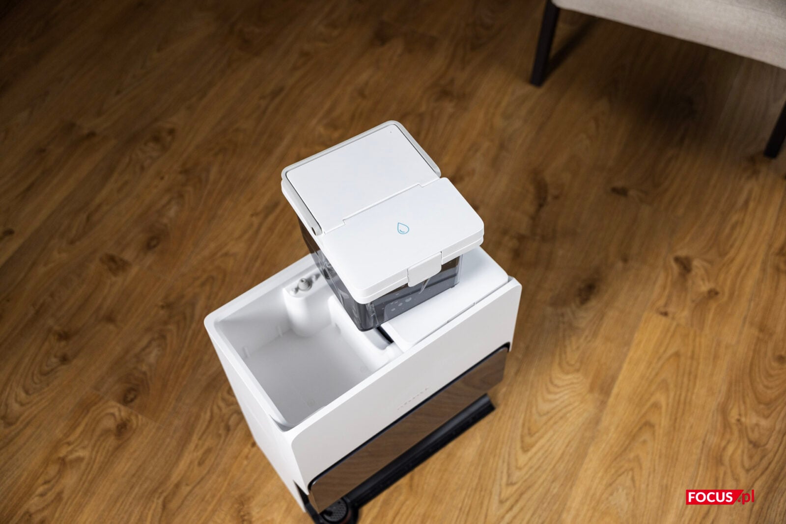Stacja służy też do wymiany wody w robocie w trakcie sprzątania oraz czyszczenia go po zakończonej pracy. Nawet przy regularnym sprzątaniu, podkładki mopujące się brudzą, a po zakończonym cyklu są mokre. Jak łatwo się domyślić, bez ich czyszczenia i suszenia szybko możemy zacząć się zastanawiać, co i gdzie nam w domu umarło. Stacja samodzielnie osusza podkładki mopujące oraz płucze je nie tylko po, ale też w trakcie sprzątania. Dzięki temu są czyste, gotowe do pracy i nie wydzielają nieprzyjemnych zapachów.