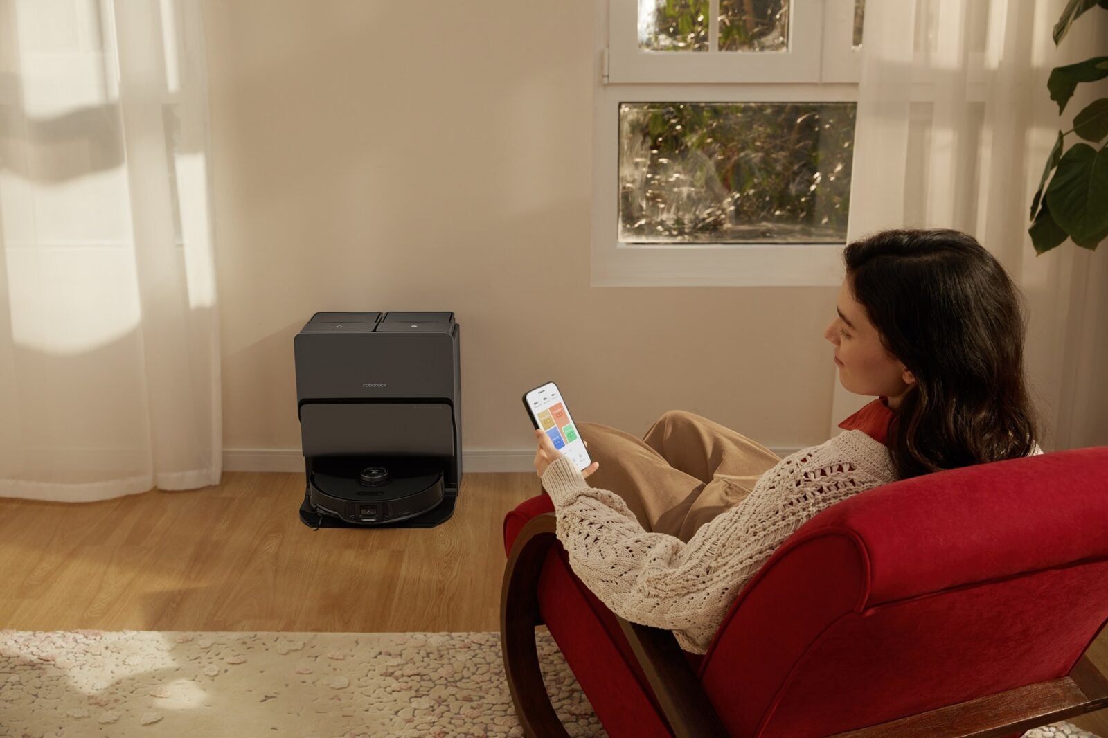 Korzystanie z Roborock S8 MaxV Ultra jest prawdziwie bezobsługowe, za co odpowiada wielofunkcyjna, udoskonalona stacja bazowa RockDock Ultra 3.0. Po dotarciu do stacji następuje mycie mopa ciepłą wodą i suszenie w temperaturze 60℃, przez co brud jest skutecznie usuwany, a po całym procesie mop pozostaje nie tylko czysty, ale też idealnie suchy, więc nie ma strachu, że będą namnażały się w nim bakterie. Stacja wyposażona jest też w automatyczny dozownik płynu czyszczącego, a jedno uzupełnienie dozownika o pojemności 580 ml powinno wystarczyć nawet na 3 miesiące sprzątania – kolejna rzecz, którą nie musimy się przejmować. Oczywiście stacja bazowa również opróżni pojemniki na kurz i ten z brudną wodą, zastępując go czystą, by urządzenie było gotowe do kolejnego sprzątania.