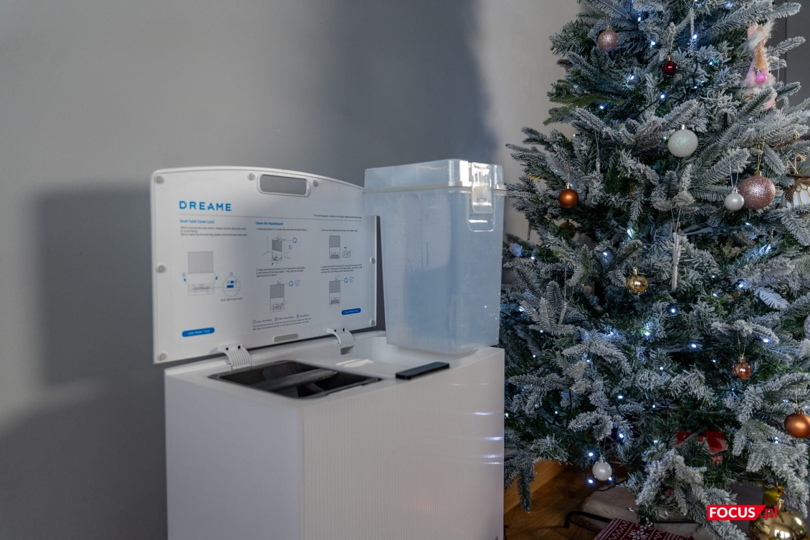Jeśli zależy wam na większym zaawansowaniu, a przede wszystkim na tym, by wasz robot był bardziej bezobsługowy, mamy dla was model L10s Ultra. Działa on w pełni automatycznie, bo dzięki dołączonej do zestawu stacji samodzielnie opróżnia pojemnik na kurz oraz uzupełnia wodę i środek czyszczący w zbiorniku – nie musimy już tego robić sami po każdym sprzątaniu. 3-litrowy worek na śmieci może wystarczyć nawet na 60 dni użytkowania, a po tym czasie jedynie go wymieniamy. Kolejną rzeczą, w której robot nas wyręczy, jest czyszczenie padów mopujących. Normalnie po każdym użyciu musielibyśmy je wymontować i wyczyścić, by uniknąć ryzyka rozwijania się pleśni, powstawania brzydkiego zapachu oraz bakterii. Dreame L10s Ultra robi to sam, najpierw myjąc pady, a potem osuszając je gorącym powietrzem. W stacji dokującej znajdują się dwa zbiorniki, jeden na brudną wodę, drugi na czystą, więc kiedy robot się wyczyści, od razu przygotuje wszystko na kolejne sprzątanie.
