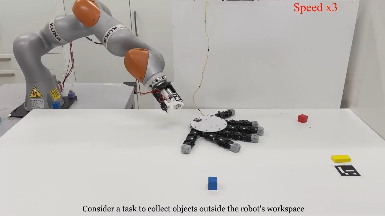 Najciekawszy jest jednak moment, w którym dłoń przechodzi w tryb „spaceru”. Wykorzystując swoje palce jak maleńkie nogi, robot porusza się po powierzchniach płaskich w sposób niemal organiczny, przypominający ruchy zwierzęcia. Podczas gdy część palców odpowiada za napęd i utrzymanie równowagi, pozostałe mogą w tym samym czasie chwytać i trzymać nawet trzy przedmioty naraz. To sprawia, że dłoń staje się samodzielnym, mobilnym manipulatorem, który może dotrzeć tam, gdzie całe ramię robota by się nie zmieściło.