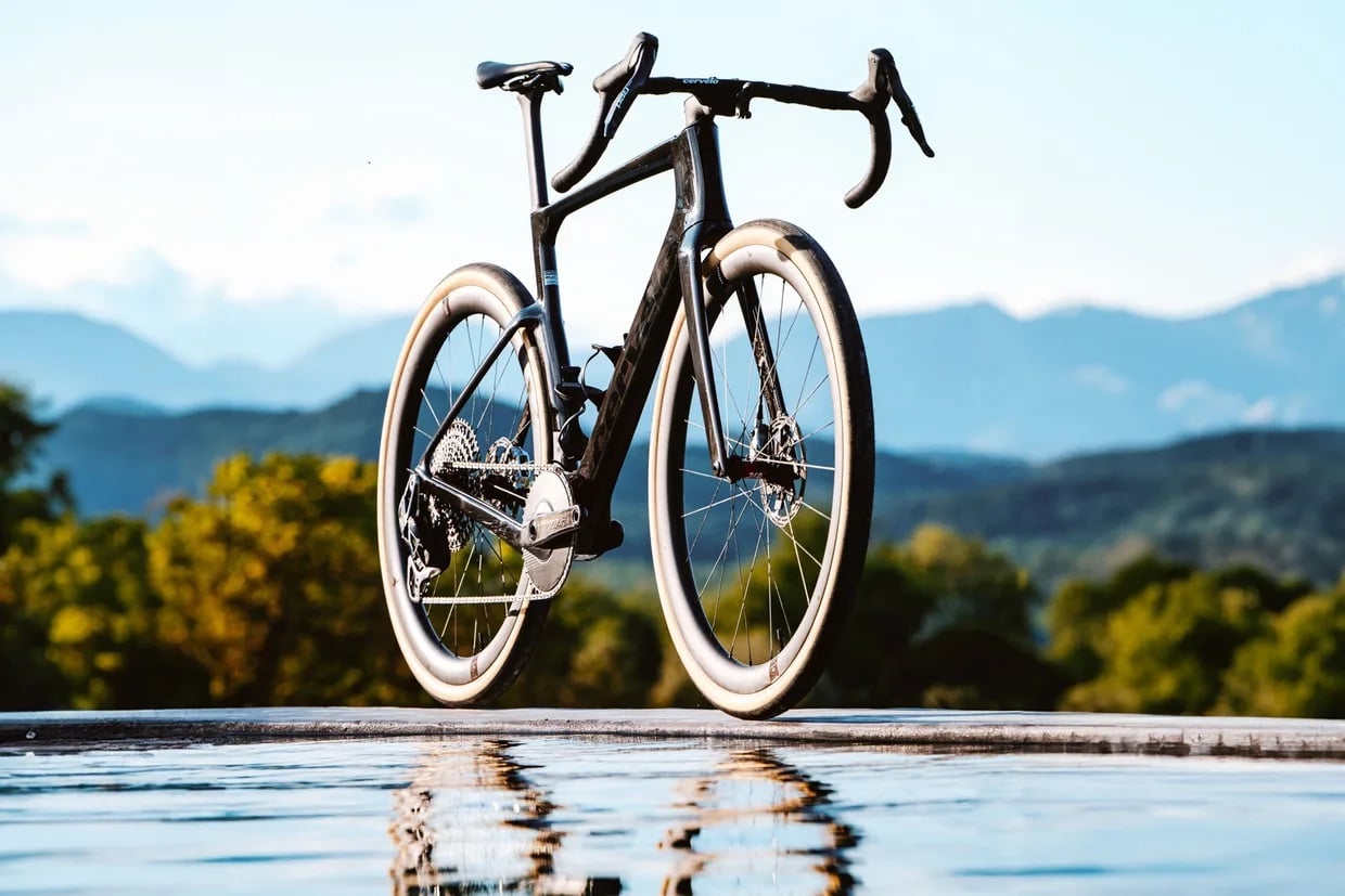 Nacisk na aerodynamikę widoczny jest tu w każdym elemencie roweru. Widelec został całkowicie przeprojektowany — jego głębsze golenie oraz płynniejsze przejście główki ramy zwiększają opływowość, eliminując przy tym stosowany wcześniej regulowany widelec typu twin-tip. Zamiast manipulować geometrią ramy, Cervélo stawia na optymalizację poprzez dobór mieszanych rozmiarów opon — standardowo 42 mm z przodu i z tyłu, ale do wyścigów sugeruje się konfigurację 40 mm z przodu i 44 mm z tyłu.
