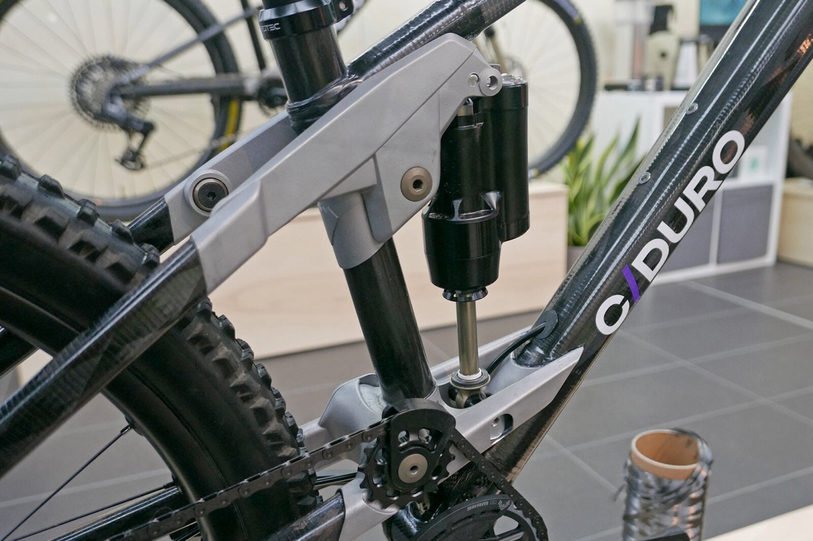 Rower oferuje zawieszenie typu Horst-link z wysokim punktem obrotu oraz rolką napinającą. Konstrukcja pozwala na regulację skoku tylnego koła w zakresie od 170 do 190 mm, a także umożliwia konfigurację kół jako pełne 29-calowe lub w popularnym układzie mullet z przednim kołem 29 cali i tylnym 27,5 cala. Taka elastyczność setupu pozwala dostosować rower do indywidualnych preferencji i stylu jazdy.