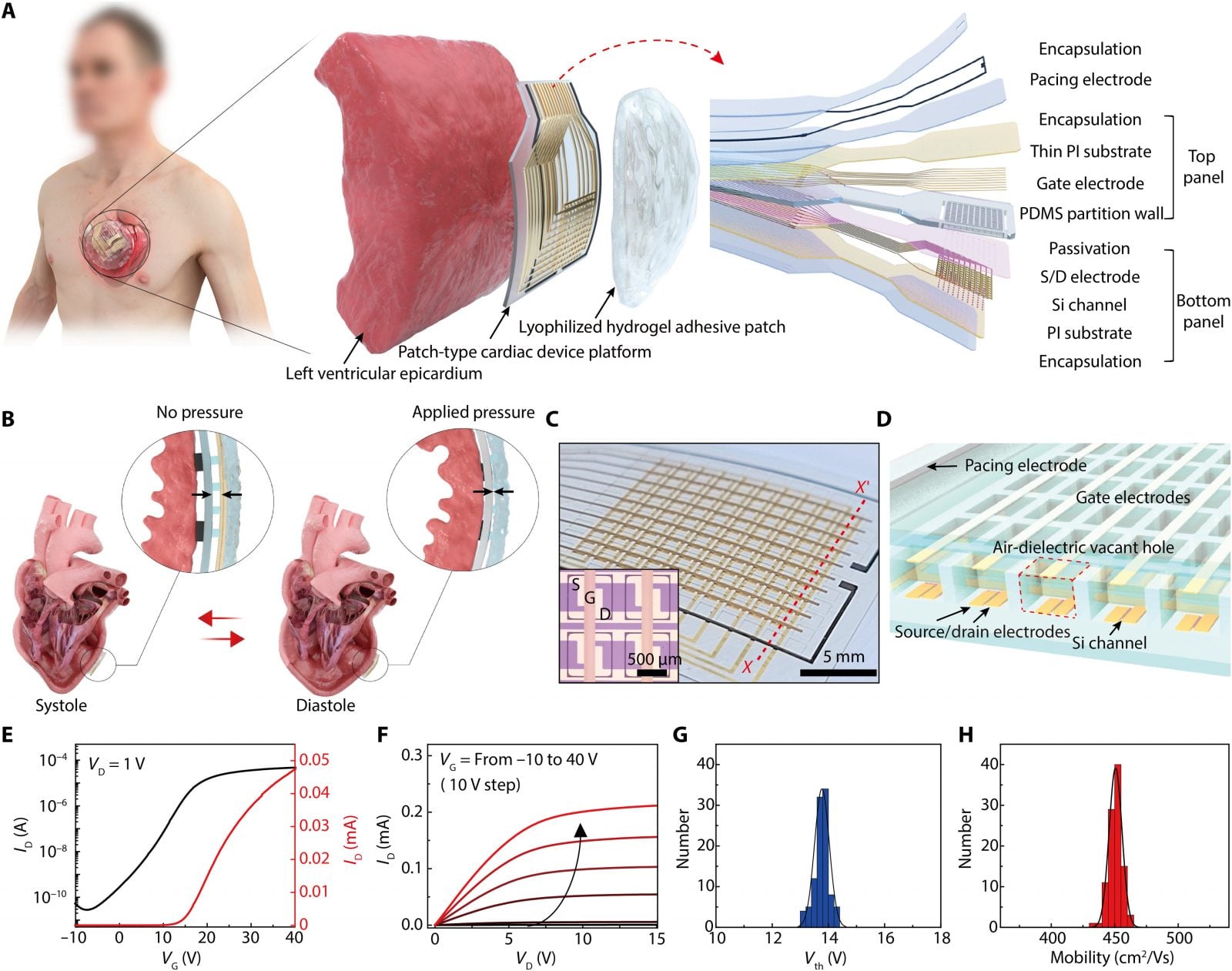 Nowe urządzenie to niewielka platforma składająca się z tranzystorów wrażliwych na nacisk, które mogą wykryć bicie serca, wraz z elektrodami o niskiej impedancji, które stymulują organ i zatrzymują arytmię. W testach na królikach, urządzenie było w stanie wykryć arytmię serca i wyemitować odpowiednie impulsy elektryczne w celu skorygowania nieprawidłowych rytmów serca.
