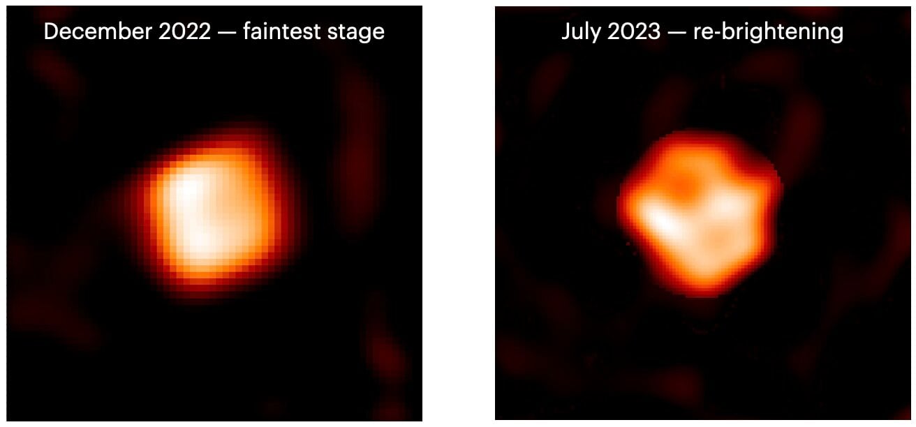Obserwacje wykazały, że gwiazda nie jest okrągła, tak jak oczekiwano. Ta informacja sprawiła, że niezbędne było wykorzystanie algorytmów do odtworzenia rzeczywistego kształtu gwiazdy. Analiza wykazała, że mamy do czynienia nie tylko z monstrualną gwiazdą, ale z gwiazdą, która wprawiana jest w konwulsje przez ruchy mas w jej wnętrzu. W wyniku tych konwulsji na powierzchni gwiazdy tworzą się ciemniejsze i jaśniejsze plamy.