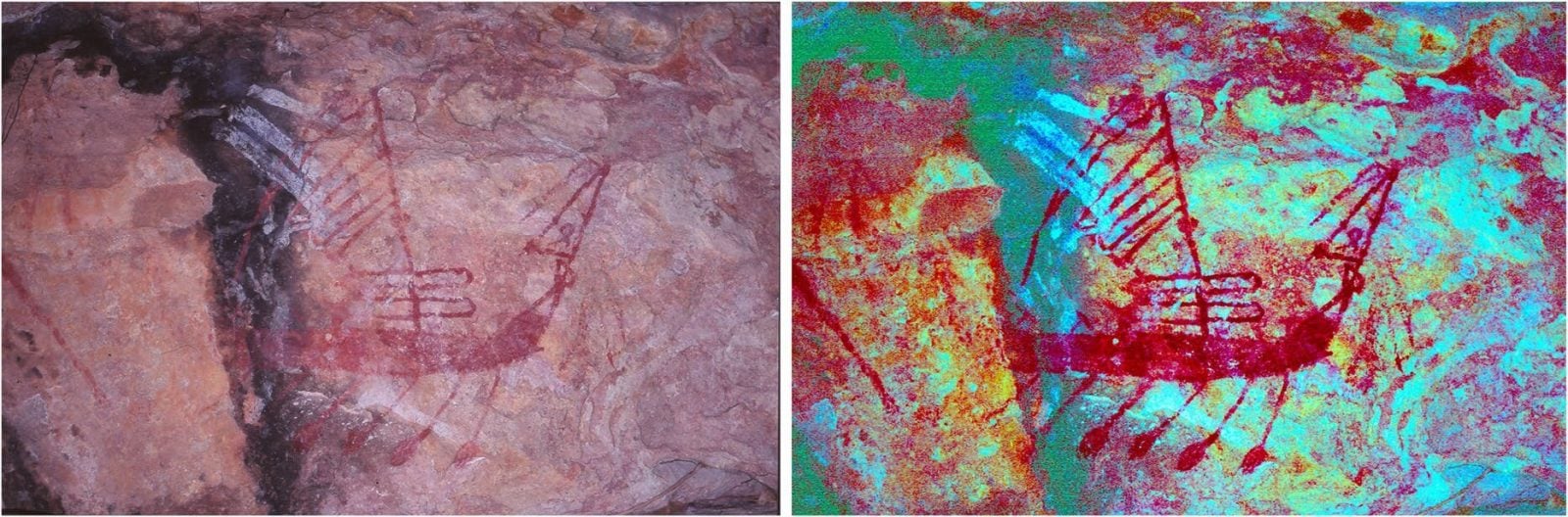Rysunki naskalne ukazują statki prawdopodobnie wykorzystywane do podróży, w czasie których spotykali się mieszkańcy Moluków oraz australijscy Aborygeni