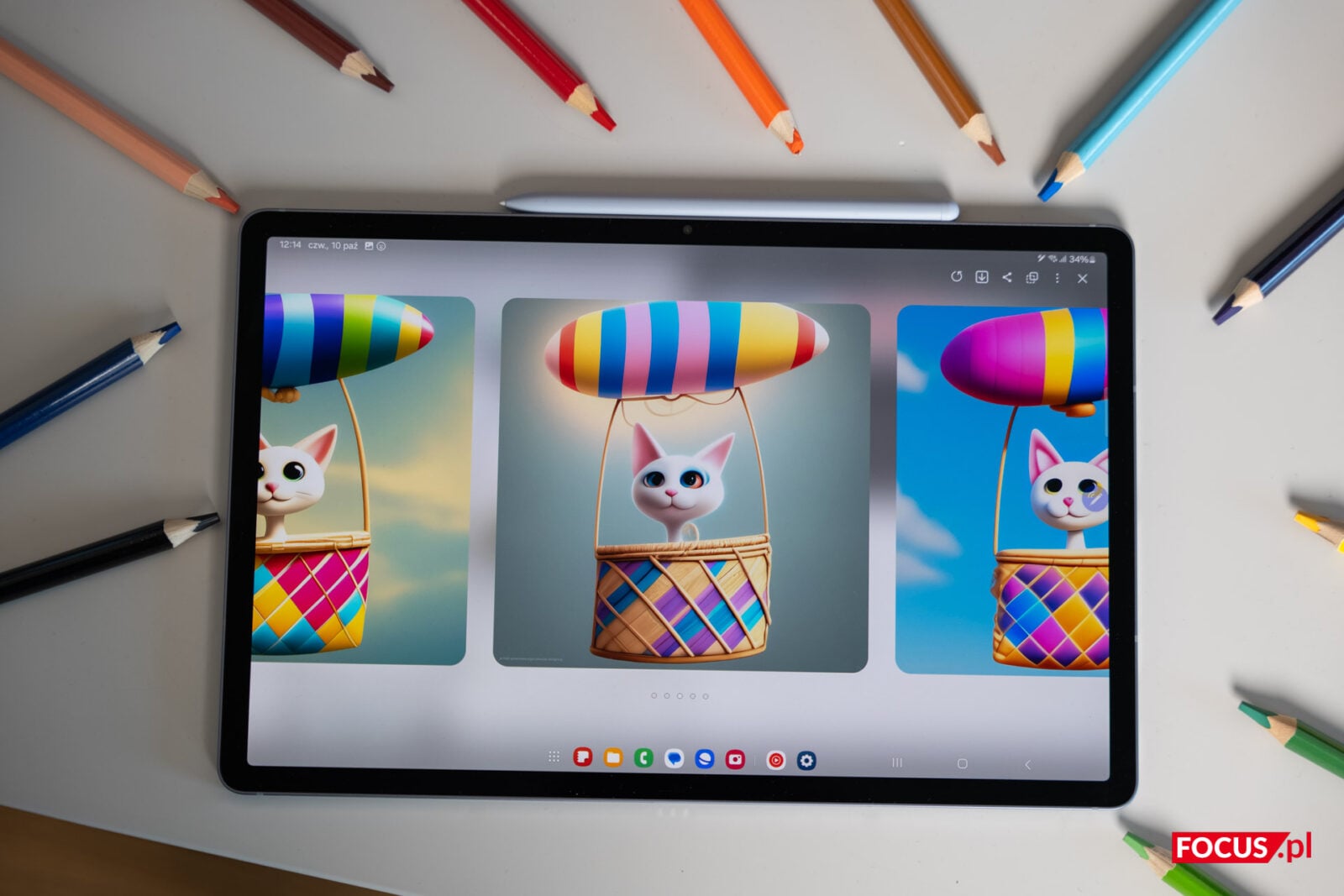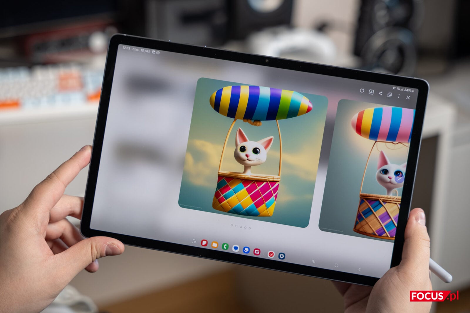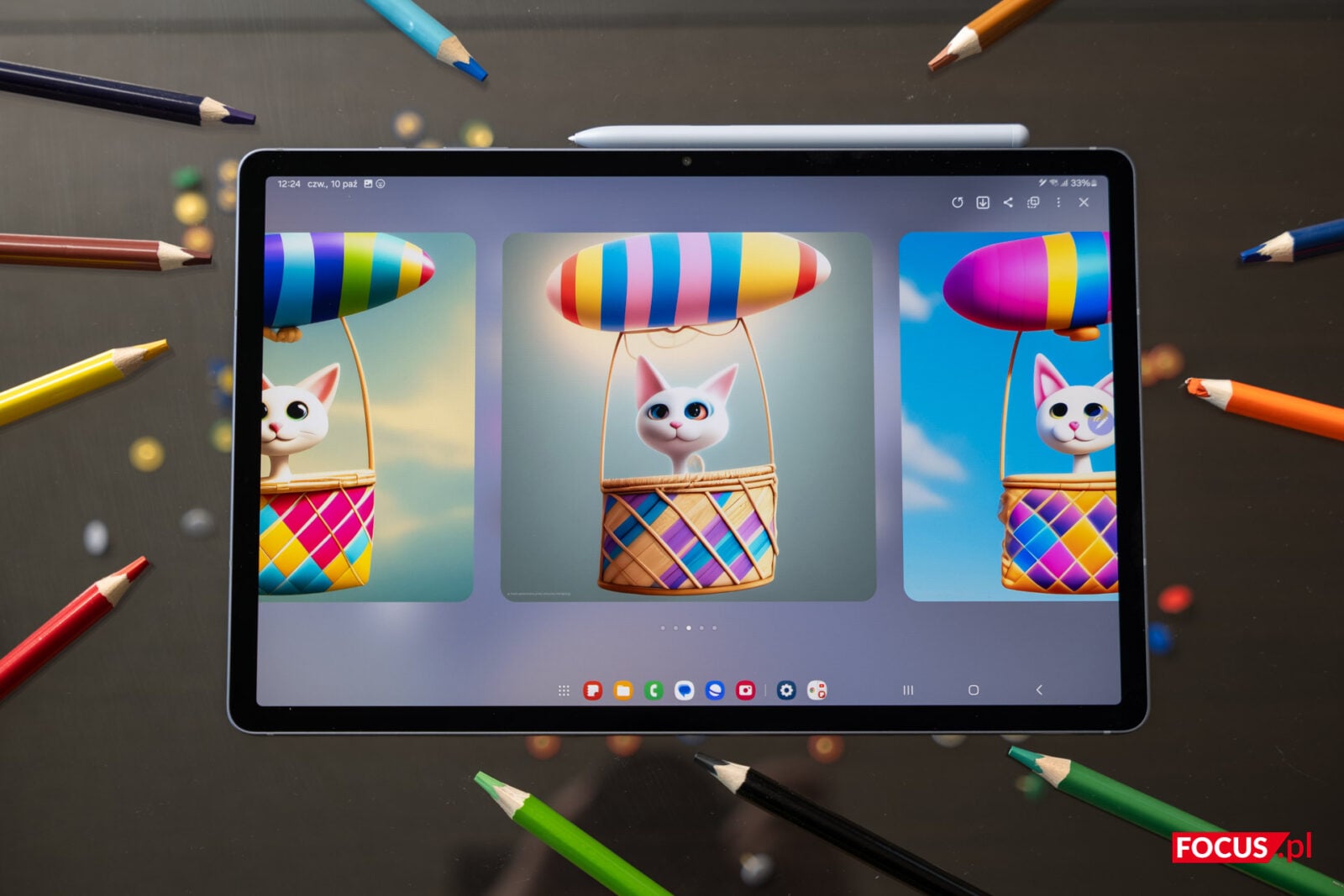 Samsung Galaxy Tab S10+ 5G to świetna propozycja dla twórców… albo dla osób, które do tego tytułu aspirują. Dzięki Galaxy AI i rysikowi S Pen, tworzenie skomplikowanych projektów stało się prostsze niż kiedykolwiek. Jeśli nie umiecie szkicować i narysowanie prostej linii to dla Was zbyt wiele, nie mówiąc już o realistycznych portretach (czyli po prostu nie macie szczególnego talentu, tak jak ja sam), to w tym przypadku nic nie stoi na przeszkodzie do stworzenia prawdziwych dzieł sztuki. Dzięki funkcji „Szkic na obraz” opartej na sztucznej inteligencji, tablet nawet największe bohomazy zamieni w obrazy z prawdziwego zdarzenia w mgnieniu oka. Poniżej sami możecie zobaczyć, jak moje bazgroły zamienił w naprawdę uroczy obraz kota latającego wielkim balonem w stylu kreskówki 3D czy przerodził szkic domku na słonecznej łące na prawdziwe obrazy w kilku różnych stylach.