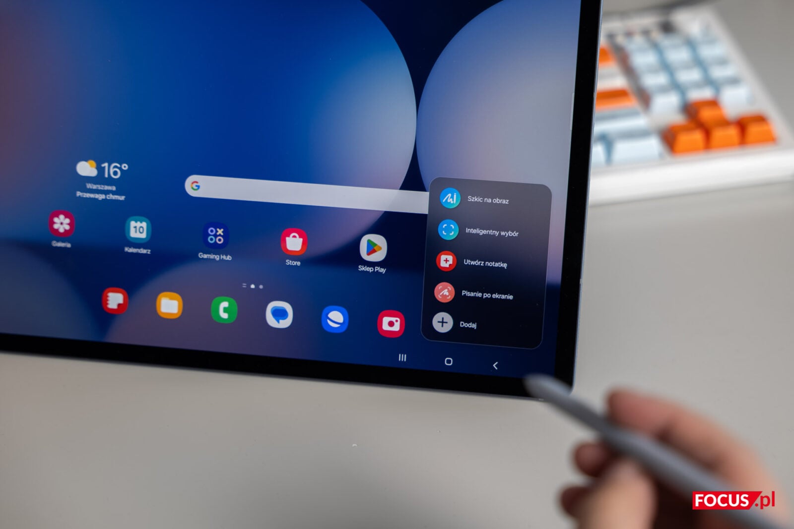Współpraca między S Penem a Samsungiem Galaxy Tab S10+ 5G robi wrażenie. Kiedy korzystamy z rysika, z prawej strony ekranu pojawia się małe, podręczne menu. Z tego miejsca możemy włączyć absolutnie wszystkie najważniejsze funkcje — między innymi jesteśmy w stanie przejść do notatek i zacząć rysować czy pisać, ale to nie wszystko. Czeka tam na nas bowiem cała masa funkcji Galaxy AI. Podręczne menu możemy także dowolnie rozbudowywać, wybierając wśród takich funkcji jak „Szkic na obraz”, „Inteligentny wybór”, „Utwórz notatkę”, „Pisanie po ekranie”, „Powiększenie”, „Tłumacz”, „Wyświetl wszystkie notatki”, „Pisz w kalendarzu”, „PENUP”, „Dyktafon”… i naprawdę wiele, wiele więcej.