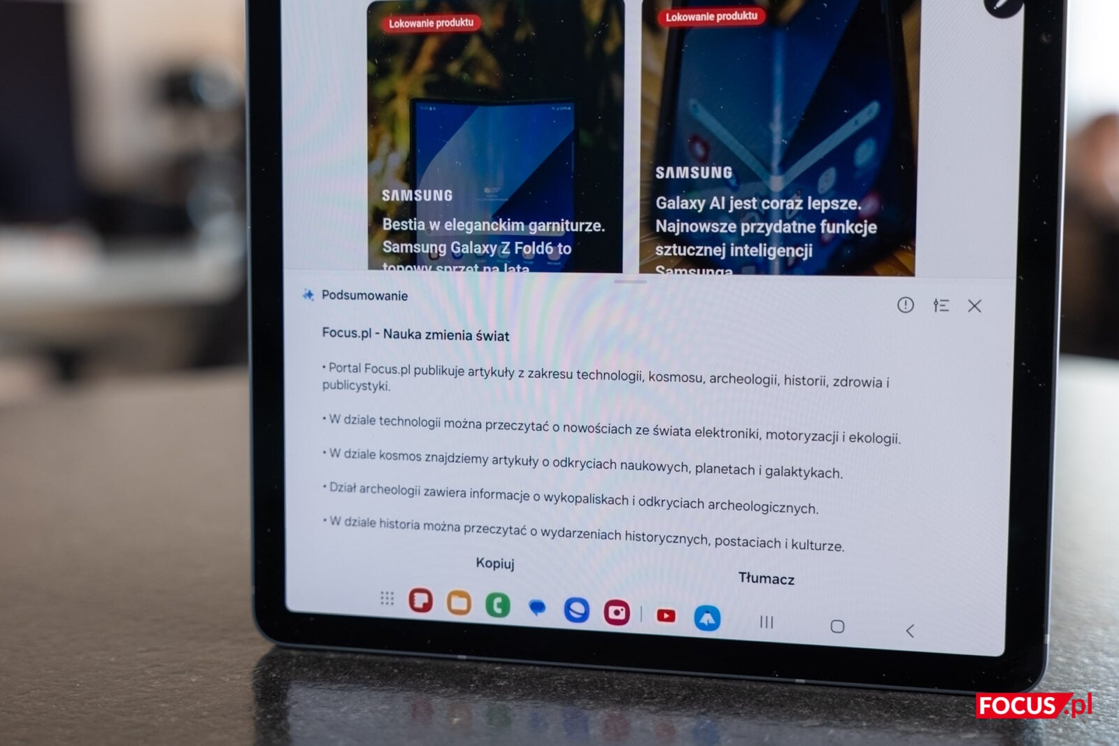 Zdecydowanie warta uwagi jest również funkcja „Tłumacz”, która sprawdza się w momencie, w którym zagubicie się w Internecie. Przeglądacie produkty Samsunga na oficjalnej, koreańskiej stronie, ale nie znacie hangula? Jedziecie na wakacje do Grecji i szukacie dobrej restauracji, ale nie mieliście w szkole greckiego? A może pragniecie poznać tekst hitowej piosenki j-popowej, ale kanji, hiragana i katakana są Wam obce? Na Samsung Galaxy Tab S10+ te problemy nie istnieją — kilkoma kliknięciami S Penem rozczytacie dosłownie wszystko.