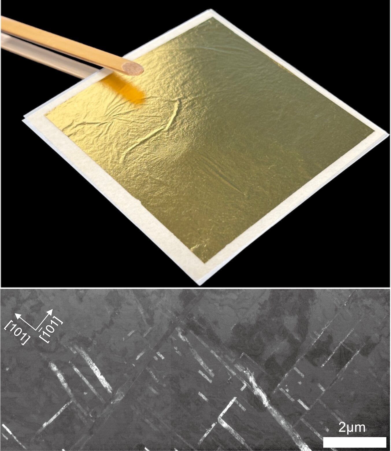 Badacze porównali dwa etapy produkcji: folię Zumi o grubości około 1 mikrometra z finalnym produktem – złotem Kanazawa nr 4 o grubości zaledwie 0,1 mikrometra. Podczas gdy pierwsza z nich miała mieszaną strukturę krystaliczną, gotowy płatek charakteryzował się doskonale uporządkowaną teksturą sześcienną {001}. Analiza wykazała również dramatyczny wzrost gęstości dyslokacji z 23 proc. do 61 proc. w trakcie procesu produkcyjnego.