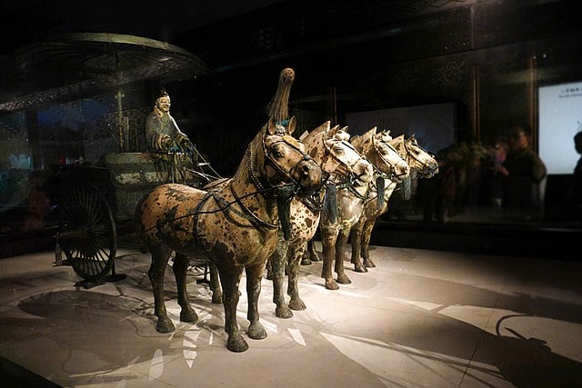 W roku 221 p.n.e. kurz bitewny powoli opadał, a zwycięzca z dumą rozgłaszał swój tryumf, wydając edykt podsumowujący podbój wszystkiego, co znajdowało się pod niebem. Treść proklamacji zachowała się w Zapiskach historyka, a jej lektura niepokojąco przywodzi na myśl przemówienia Władimira Putin, mówiące o rosyjskiej napaści na Ukrainę. Władca Qin przedstawiał się jako miłujący pokój monarcha, który wszystkich brutalnych ataków na sąsiadów dokonywał wyłącznie w akcie samoobrony. Mieszkańcy podbitych krain, czytając wystawione w ich miastach tablice z treścią dekretu zdobywcy, musieli przecierać oczy ze zdumienia. Odwracająca kota ogonem propaganda nie była jednym, czym zadziwił ich Zheng. Tryumfator ogłosił, że skoro włada całym cywilizowanym (tj. chińskim) światem, to tytuł królewski nie oddaje już wystarczająco jego potęgi. Dlatego rezygnował zarówno z niego jak i z odwiecznego obyczaju nakazującego kolejnym monarchom przybierać ceremonialne imiona. Władca nadawał sobie nowe miano, będące odtąd zarówno określeniem jego urzędu jak i osoby. Sięgając do starożytnych określeń do tej pory używanych wyłącznie przy opisywaniu półboskich herosów, sam siebie mianował huangdi, tj. cesarzem, przyjmując oficjalne miano Qin Shi Hunagdi, czyli Pierwszego Cesarza Dynastii Qin, dynastii, która, jak obwieszczały oficjalne dokumenty, panować miała przez 10 000 następnych pokoleń.