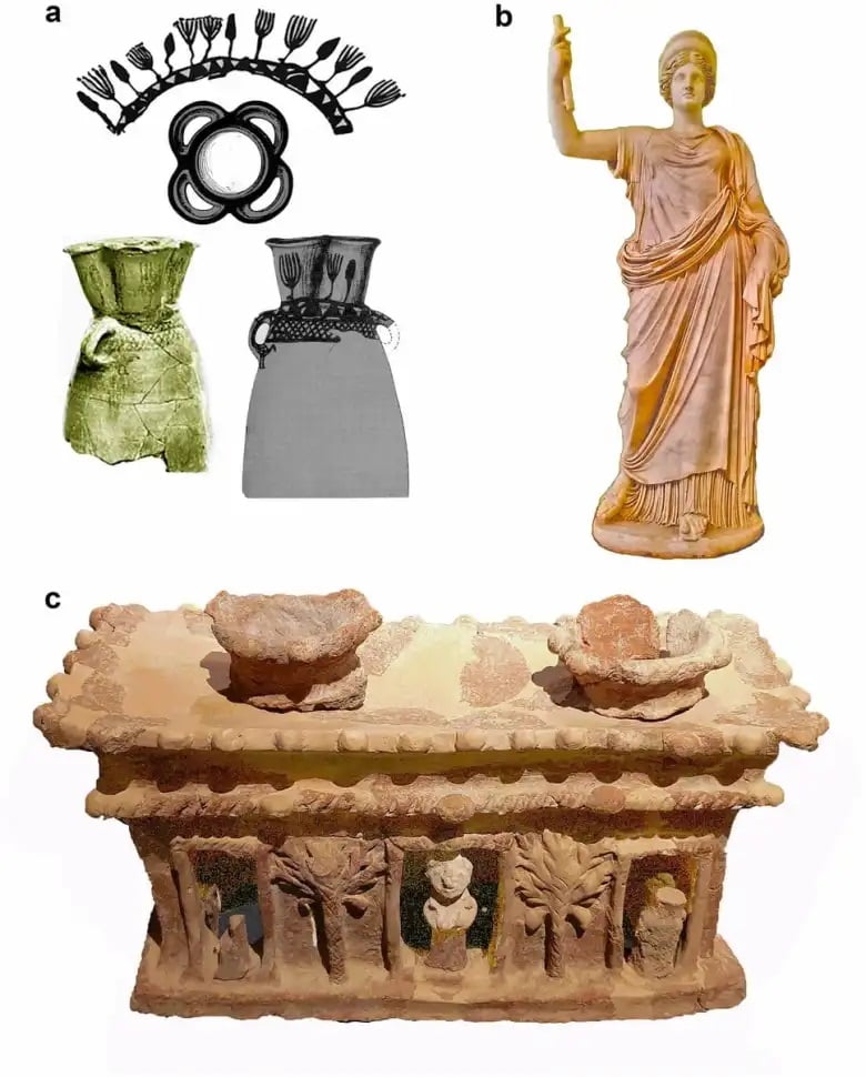 Autorzy nowych ustaleń wzięli pod uwagę cały szereg czynników, obejmujących rodzaje wykorzystywanych roślin, czas ich zbiorów, sposoby składania ofiar oraz symboliczne ich znaczenie. Razem, wszystkie te aspekty umożliwiły stworzenie kompleksowego obrazu dość zagadkowej społeczności. Wśród zidentyfikowanych gatunków archeolodzy wymieniają niepokalanka pospolitego (Vitex agnus-castus), złocienia wieńcowego (Glebionis coronaria) i świerzbnicę trawolistną (Lomelosia argentea).
