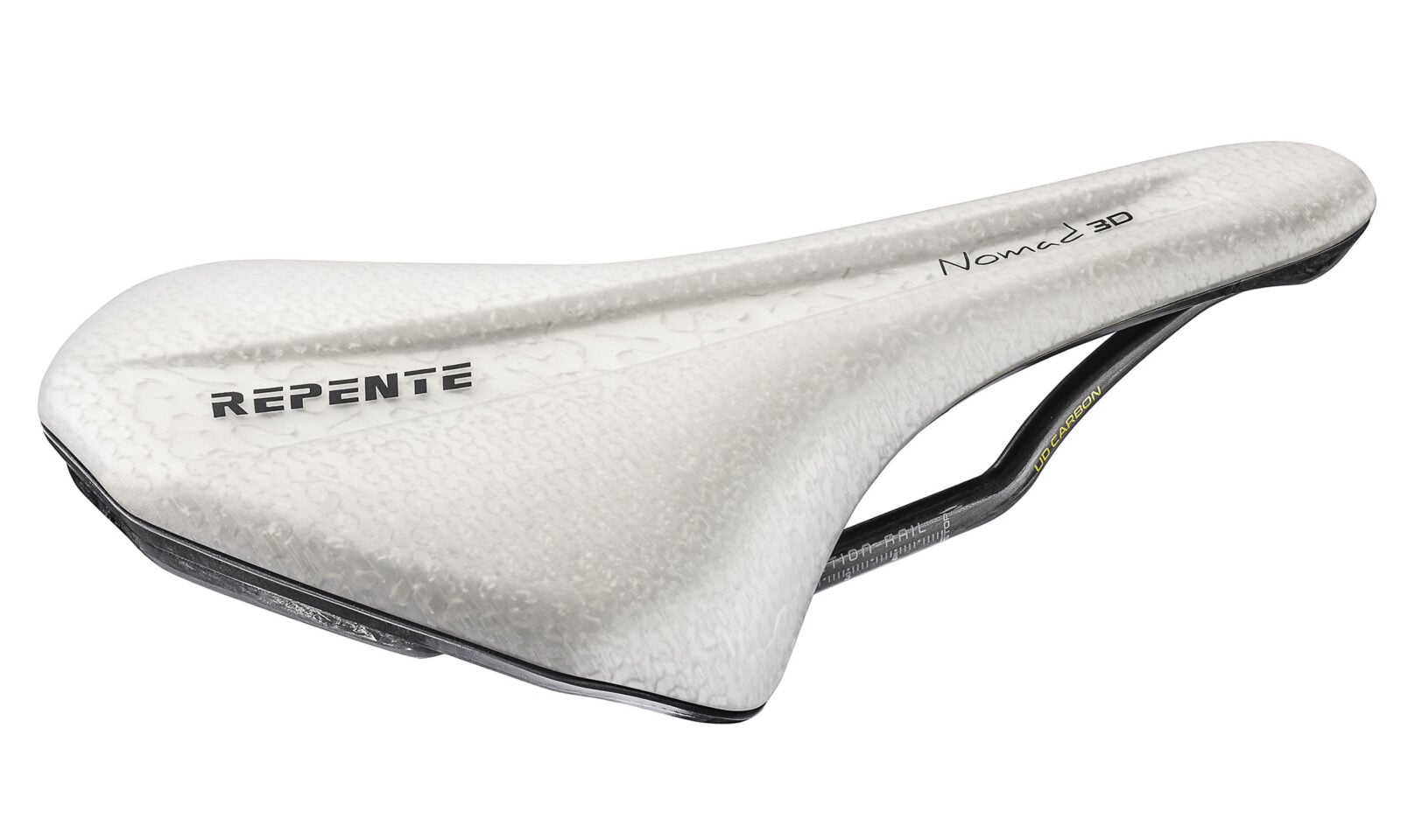 Repente podeszło do tematu inaczej. W Nomad 3D wciąż mamy drukowane z TPU wypełnienie o zróżnicowanej gęstości, ale na wierzchu pojawia się integralna, zamknięta warstwa tworząca gładki, jednolity top. Producent opisuje ją jako perłowo białe wykończenie, które delikatnie ujawnia pod spodem strukturę, kiedy pad migocze w świetle. Efekt: wizualnie dostajemy bardziej klasyczne siodło, ale z zachowaniem strefowego podparcia, które jest największym atutem 3D druku.
