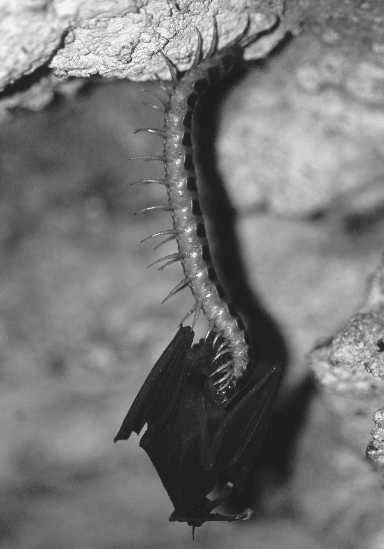 W artykule z 2005 r. czytamy przerażającą relację żywienia się nietoperzem przez skolopendrę:
