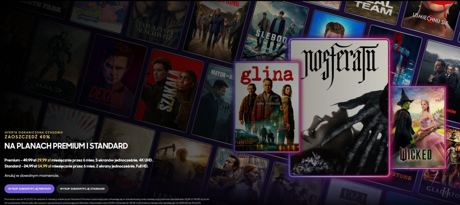 W przypadku pakietu Standard oznacza to miesięczny koszt 14,99 złotych zamiast regularnych 24,99 złotych. Różnica 10 złotych miesięcznie przez pół roku daje łącznie 60 złotych oszczędności. Pakiet Premium prezentuje się jeszcze ciekawiej – 29,99 złotych miesięcznie zamiast 49,99 złotych, co przekłada się na 120 złotych mniej przez cały okres trwania promocji.