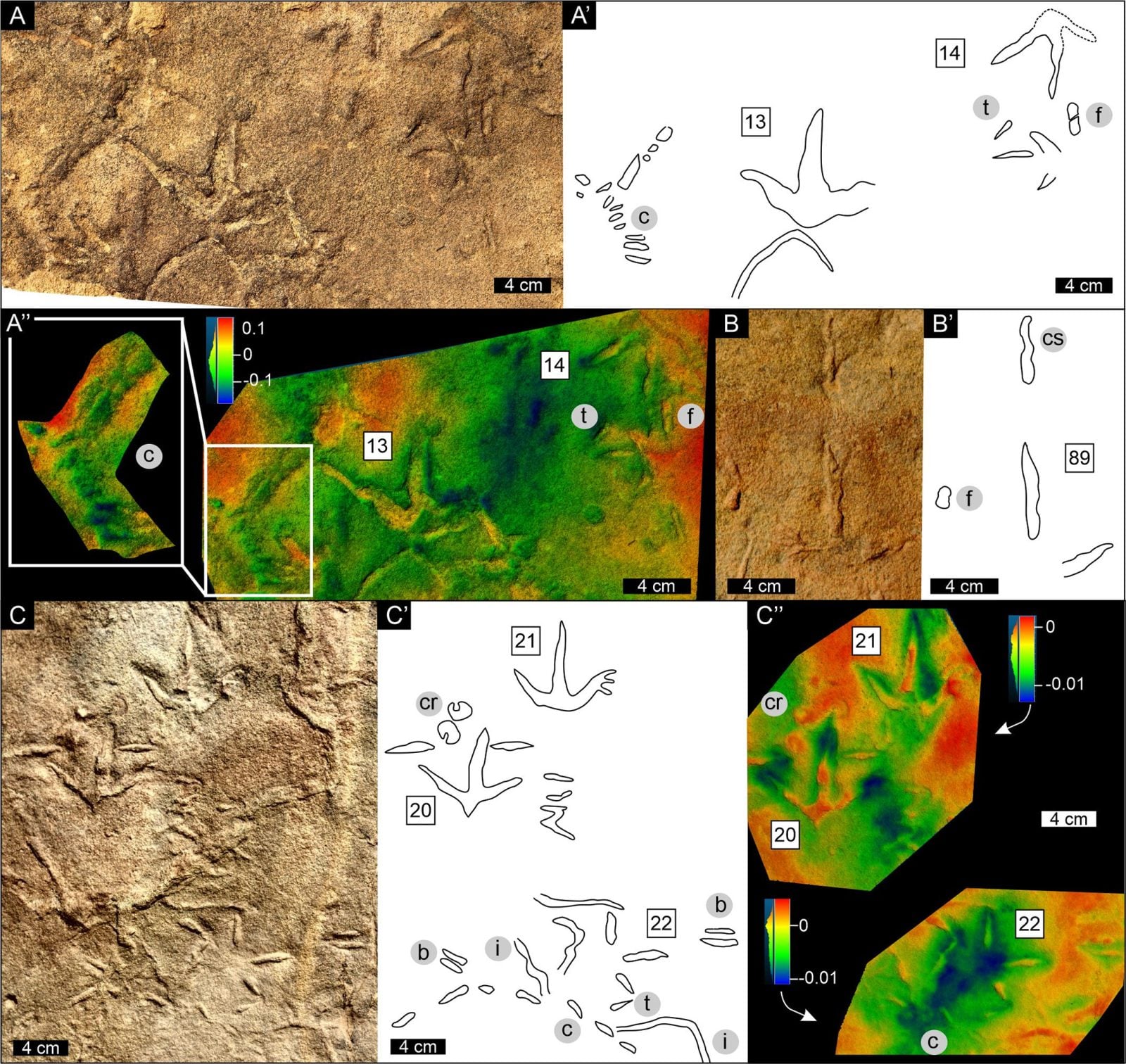 Ślady są bardzo niewielkie – liczą zaledwie od 4 do 6,5 centymetra. Charakteryzują się bardzo wyraźną trójpalczastością. Kąty pomiędzy palcami są bardzo duże, a same palce długie w stosunku do całego odcisku. Wiele cech anatomicznych znaleziska nawiązuje do śladów, jakie pozostawiają współczesne ptaki.