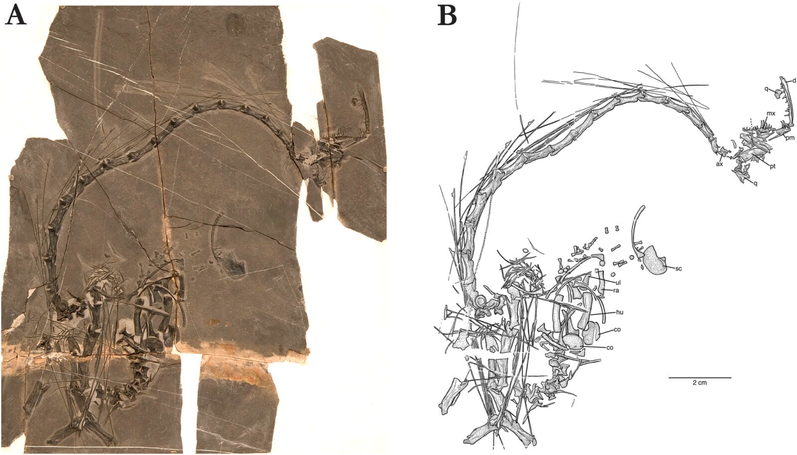 Praca paleontologów jest zbiorowym podsumowaniem 10 lat badań nad zbiorem skamieniałości gatunku Dinocefalosaurus orientalis. Po raz pierwszy ze szczątkami tego gada zetknięto się jeszcze w 2003 roku, kiedy to natrafiono na czaszkę i pierwsze trzy kręgi szyjne nieznanego zwierzęcia. Odkrycia dokonano w obrębie liczącej 240 milionów lat formacji skalnej Guanling w prowincji Guizhou. W kolejnych latach były odnajdywane dalsze fragmentaryczne skamieniałości. Zbierając je w całość, udało się zrekonstruować niemal kompletny szkielet stworzenia. Jak ono wyglądało?