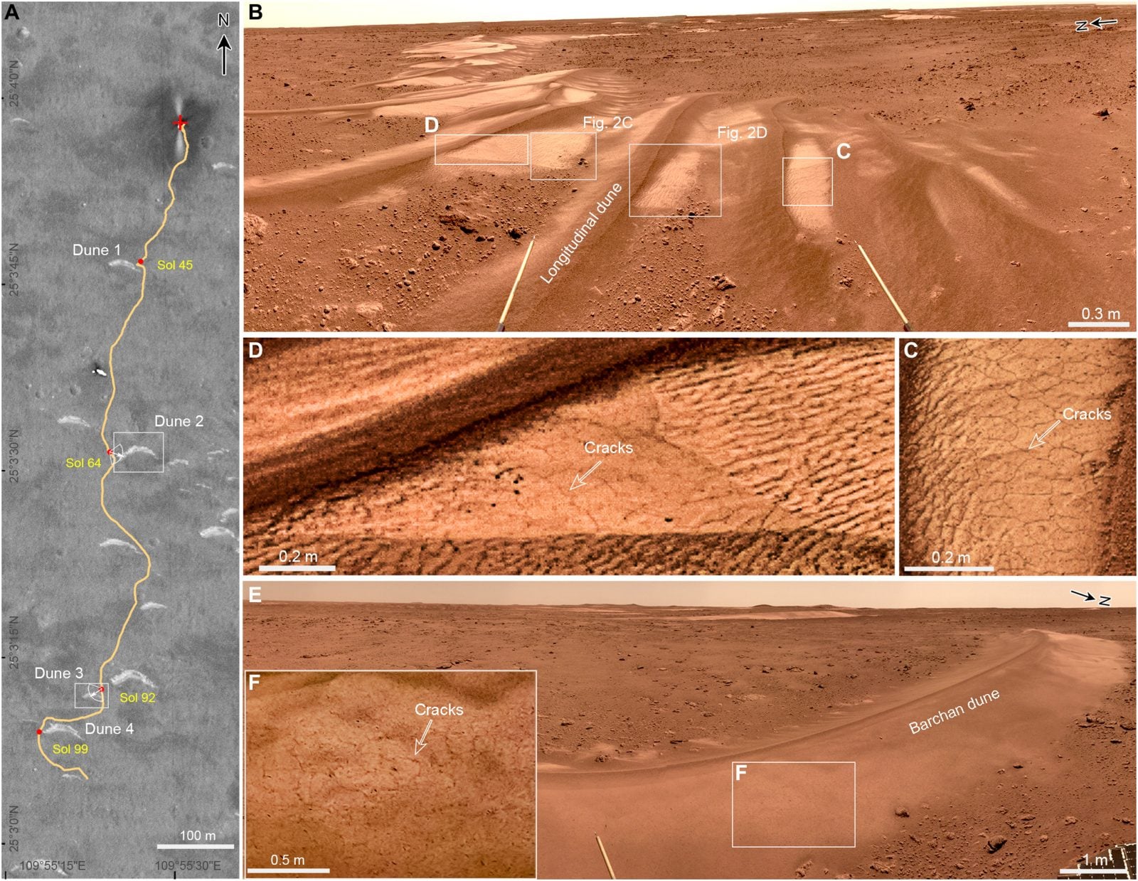 Badania w tej sprawie przeprowadzili naukowcy z Chińskiej Akademii Nauk w Pekinie. Na czele zespołu stanął Xiaoguang Qin, który wraz ze współpracownikami przeanalizował obrazy ukazujące pęknięcia oraz wierzchnie warstwy wydm piaskowych na marsjańskiej równinie Utopia Planitia. Obecność takich struktur może zostać wyjaśniona przy udziale wody w stanie ciekłym, która występowała na Czerwonej Planecie w okresie od 400 000 do 1,4 miliona lat temu.