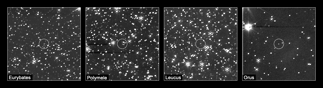 Kamera L’LORRI sfotografowała wszystkie cele znajdujące się w pierwszej grupie trojańczyków, tj. Eurybatesa, Polymele, Leucus oraz Orusa. Dzięki temu, że obiekty te były obserwowane przez odpowiednio 6,5, 2,5, 2 i 10 godzin, możemy zobaczyć je w ruchu na tle nieruchomych gwiazd. W najbliższych latach planowane są kolejne obserwacje tego typu, które będą pokazywały obiekty coraz dokładniej, a przy okazji pozwolą naukowcom przygotować się do obserwacji prowadzonych już po dolocie na miejsce.