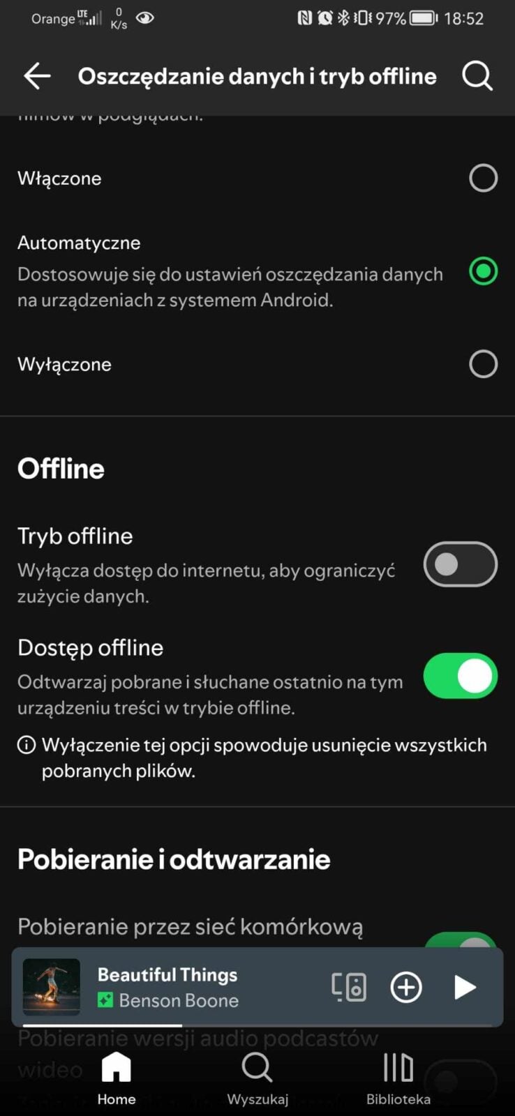 Jak skorzystać z tej funkcji? W ustawieniach należy włączyć przełącznik Dostęp Offline w ustawieniach Spotify i posłuchać co najmniej pięciu utworów. Potem lista odtwarzania offline pojawi się automatycznie na stronie głównej, gdy stracimy połączenie z siecią. Jeśli jeszcze tego u siebie nie widzicie, polecam sprawdzić, czy macie zainstalowaną najnowszą wersję aplikacji mobilnej i aktywną subskrypcję.